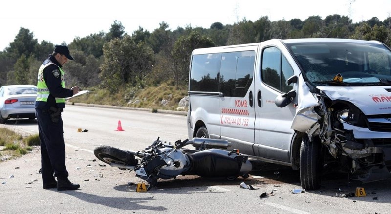 Sudarili su se kombi stranih registarskih oznaka i motocikl. Nesreća se dogodila u 11:55.