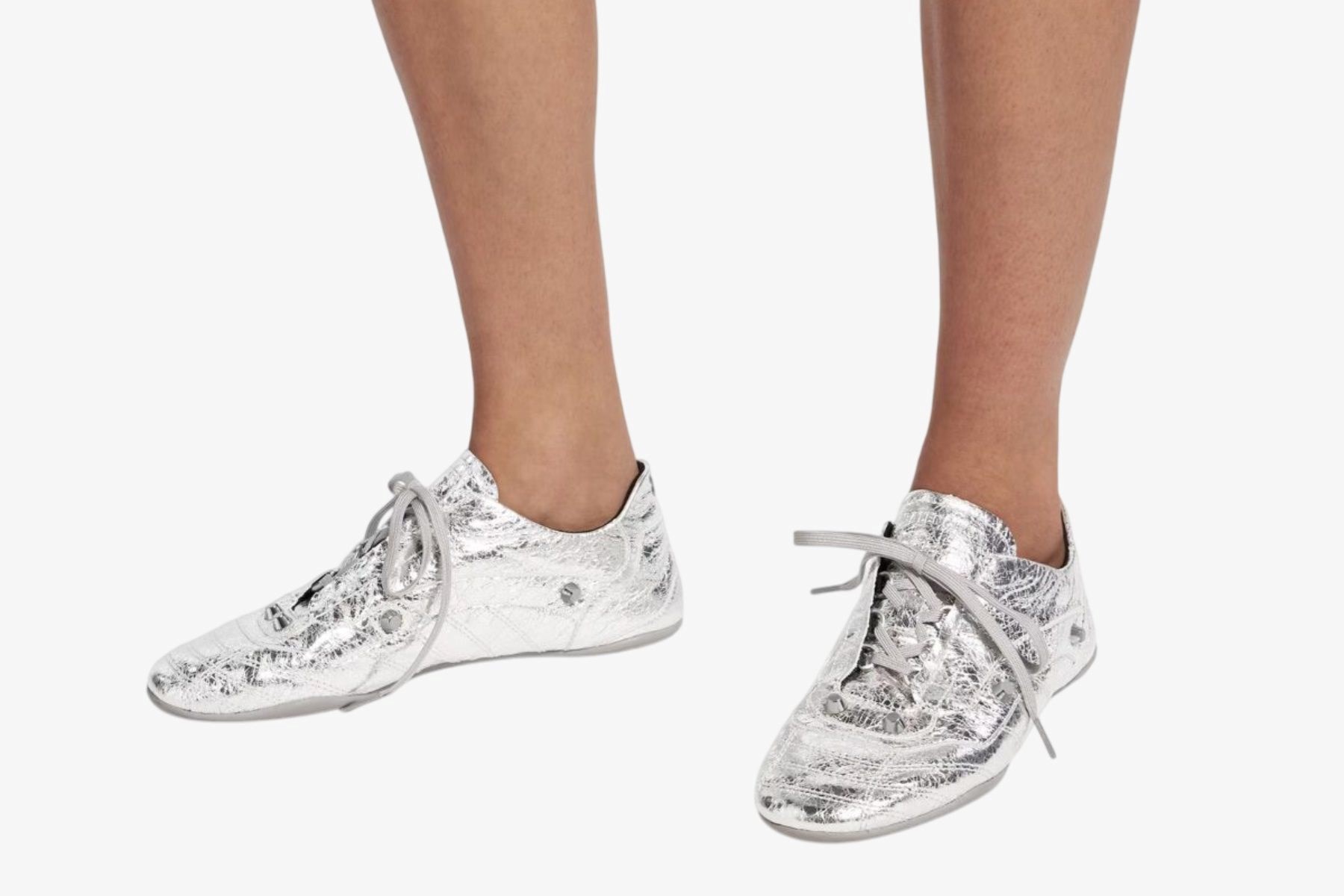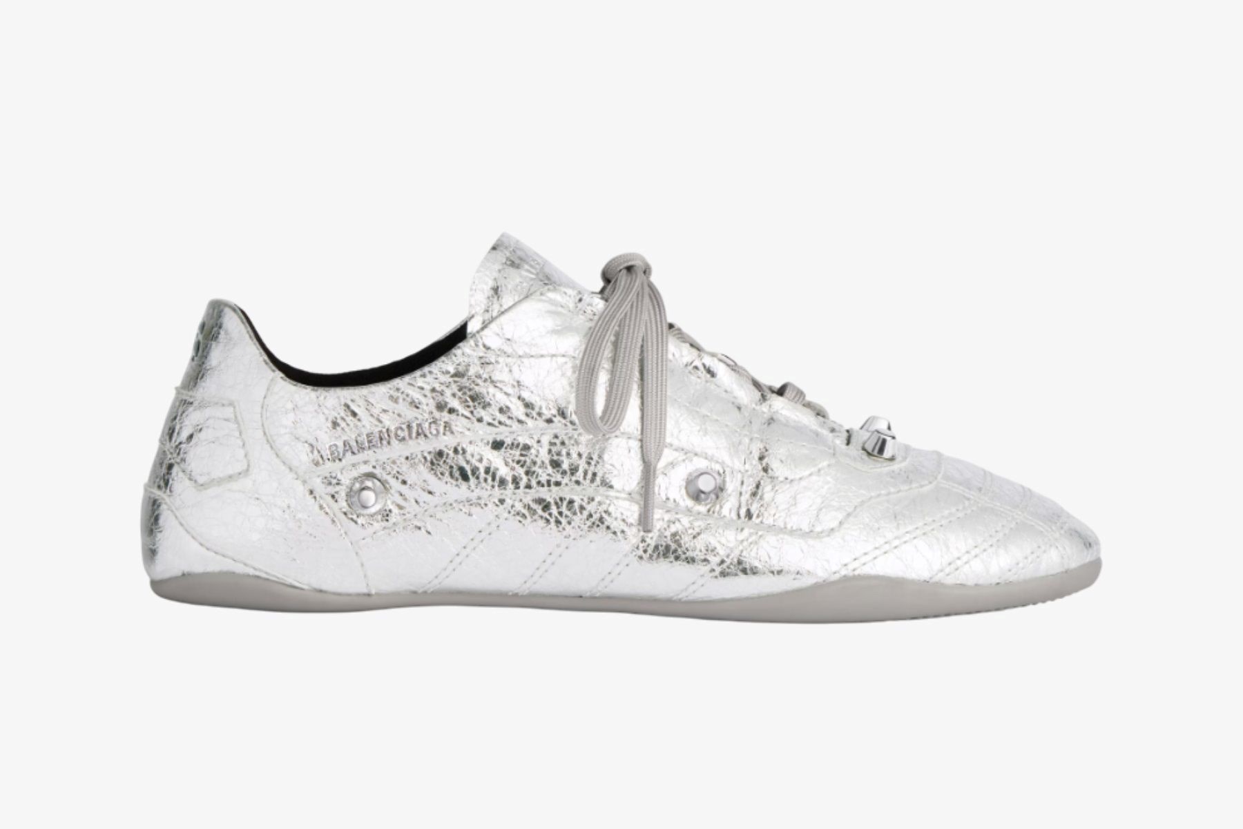Gornji tenisice izrađen je od prepoznatljive janjeće kože, poznate po svojoj karakterističnoj ispucaloj teksturi i sjajnom finišu, što izravno odražava majstorstvo izrade sinonimno s Balenciagom.