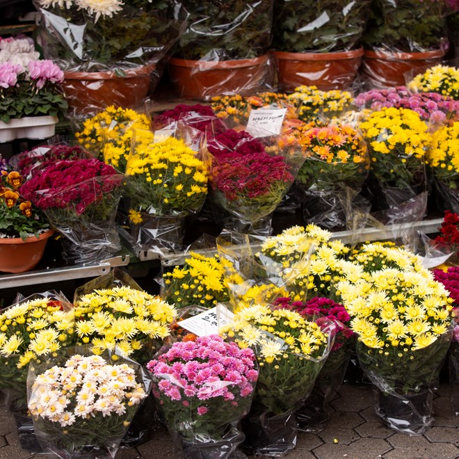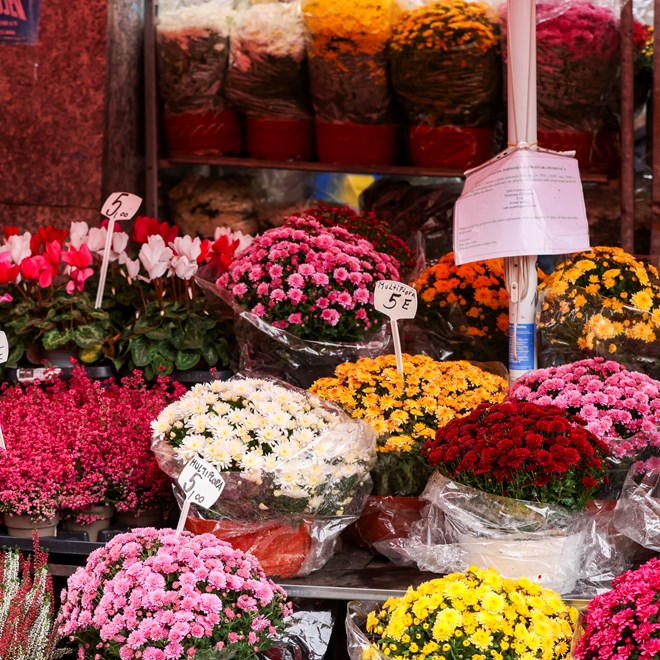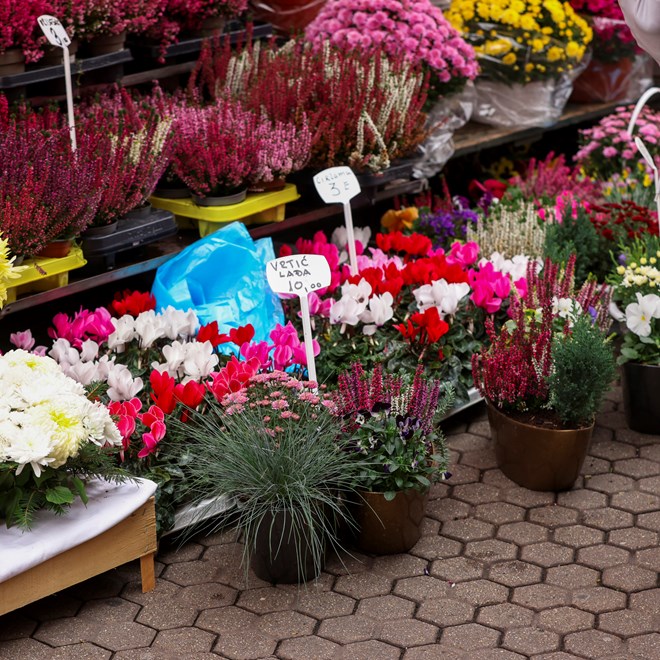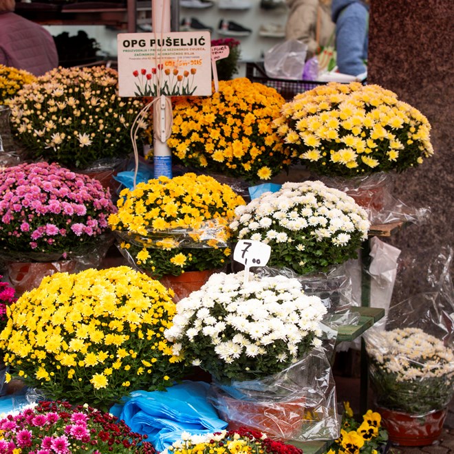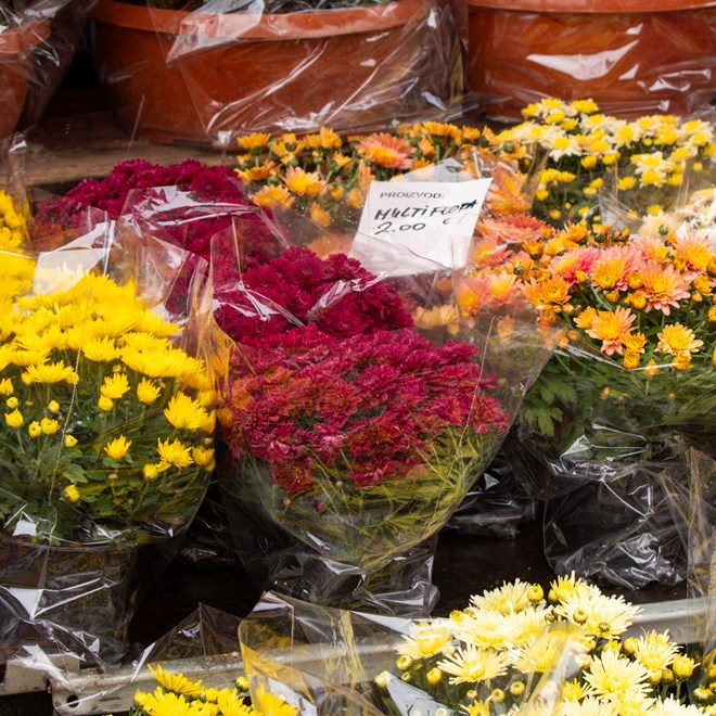 Na Britanskom trgu bila je najveća ponuda multiflora - cvijeća koje se uoči blagdana Svih svetih najviše prodaje. Cijene se kreću između 8 i 10 eura, a dostupne su u raznim bojama, od bijele i žute do crvene. Uz multiflore, mogle su se pronaći i ruže te tulipani.