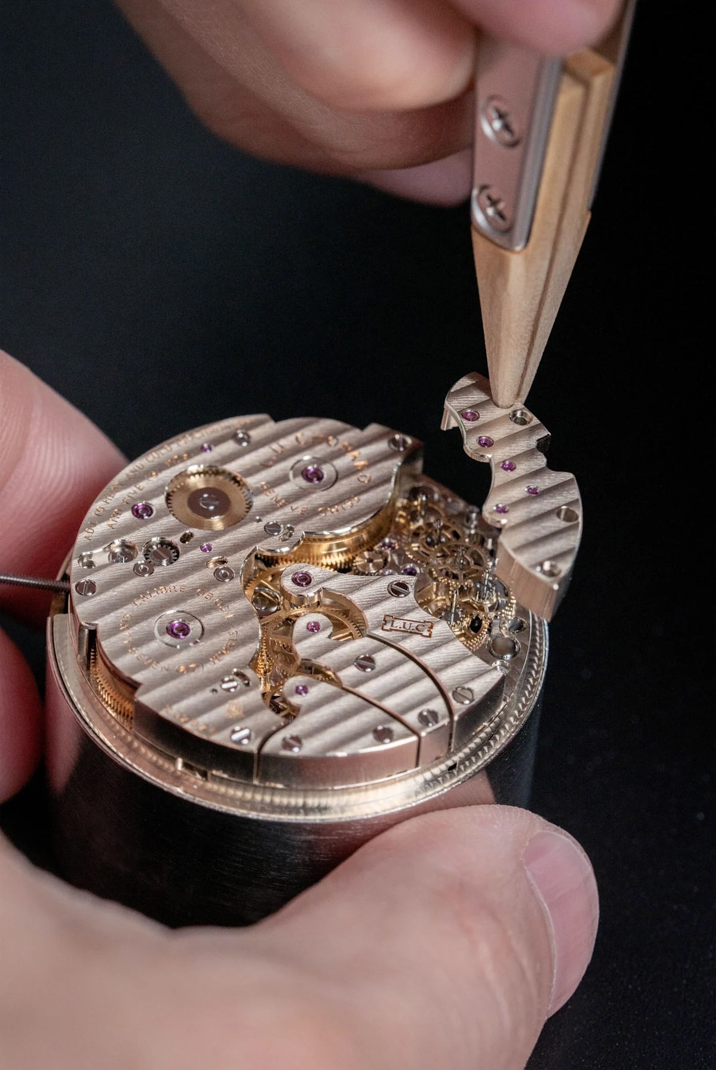 Dodatno, gongovi imaju kvadratni presjek kako bi se maksimizirao kontakt s čekićima, što stvara bogatiju i slojevitiju zvonjavu. Tvrdoća monokristalnog safira sprječava deformacije i proizvodi eteričan, rezonantan ton koji Chopardovim satovima sa zvonjavom daje njihovu prepoznatljivu simfoniju.