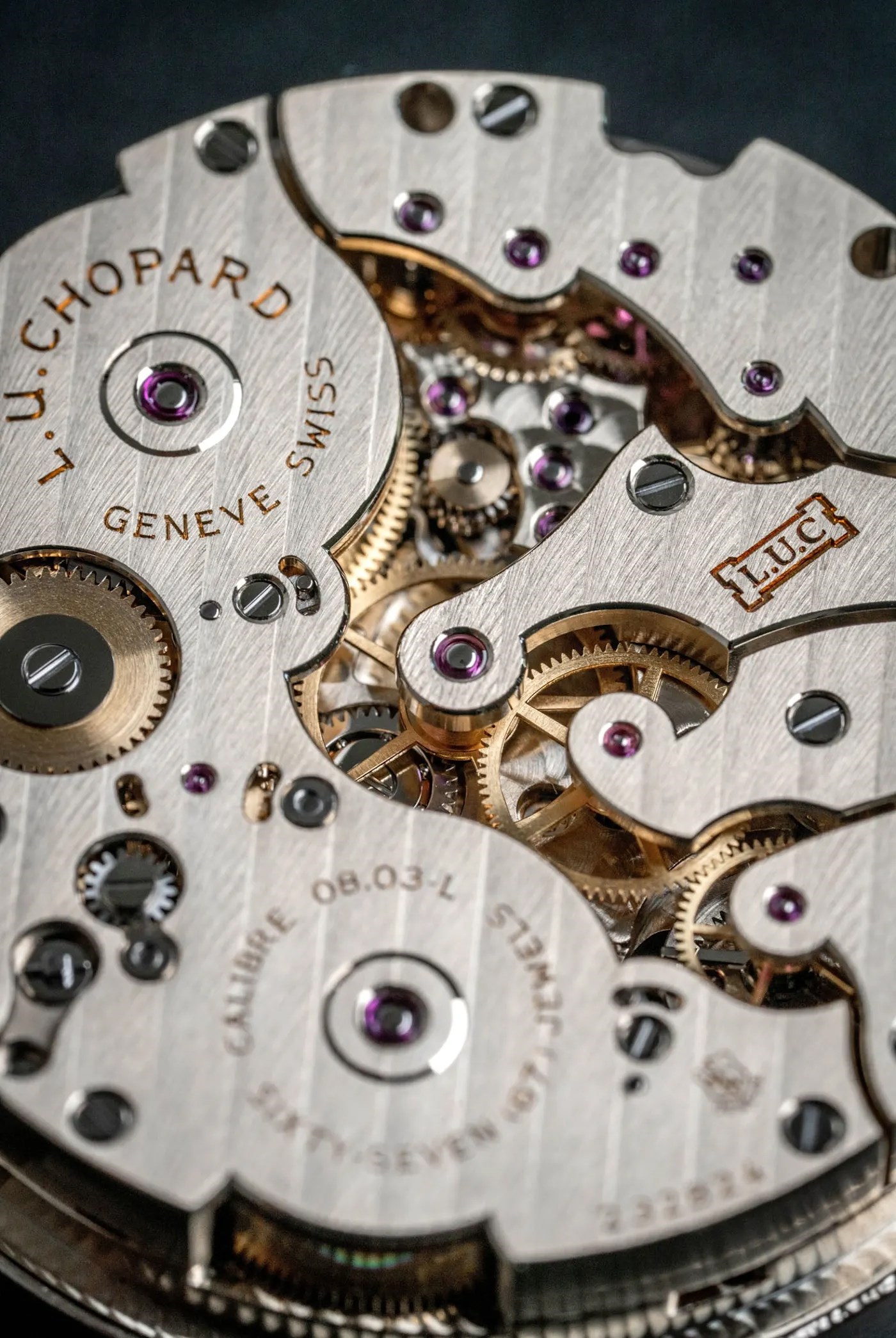 Kruna tehničkih dostignuća je prestižni certifikat Poinçon de Genève, koji jamči najviše standarde izrade, kvalitete i završne obrade. Glavna ploča i mostovi izrađeni su od njemačkog srebra, materijala koji Chopard koristi samo u svojim najiznimnijim kreacijama. Iako se razmatrao safir za most tourbillona, na kraju je odabran nehrđajući čelik zbog, kako su smatrali, upečatljivijeg izgleda.