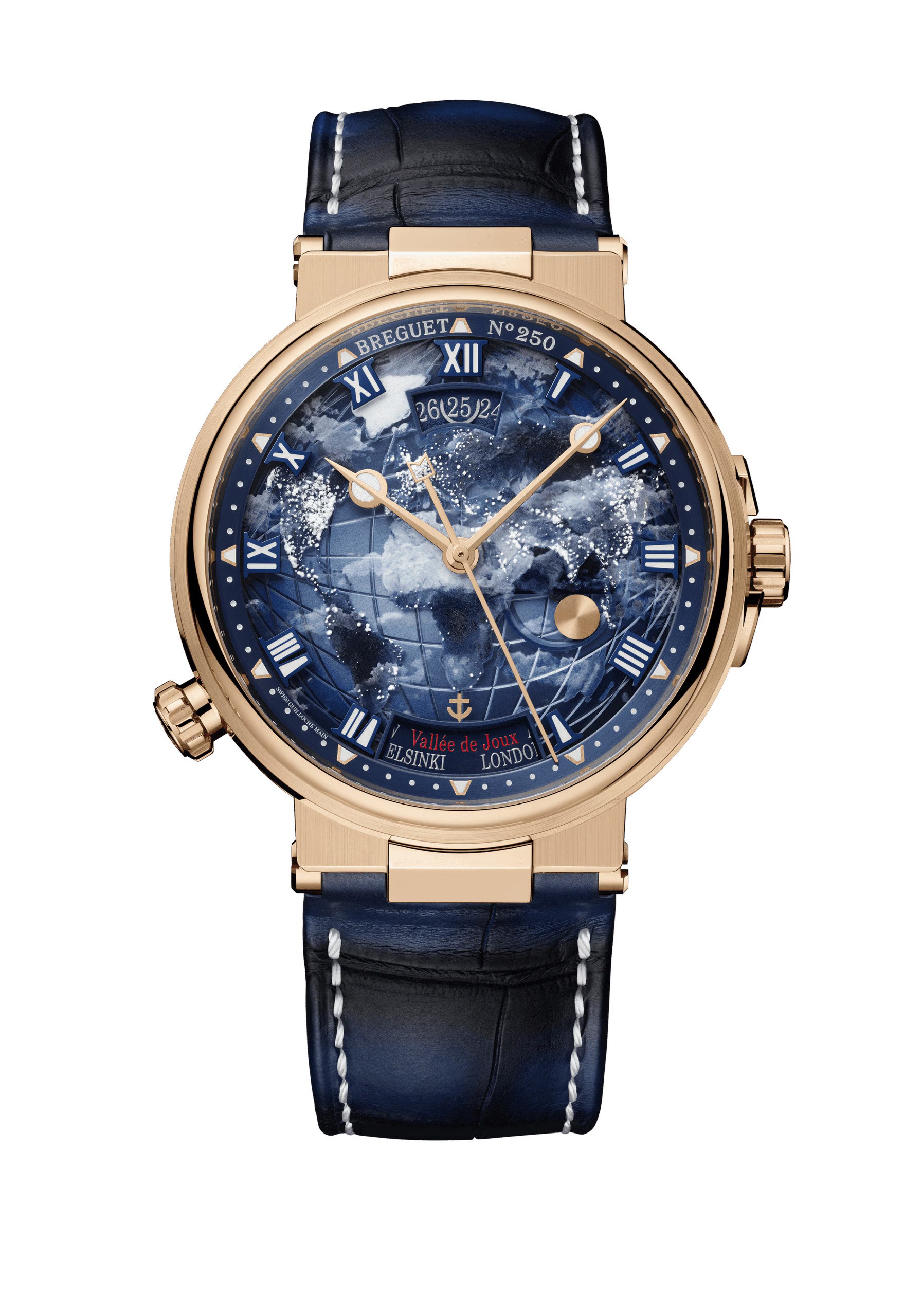 U SKLOPU proslave svoje 250. obljetnice, slavna švicarska urarska kuća Breguet predstavila je peto poglavlje svoje slavljeničke kolekcije - Marine Hora Mundi 5555. Ovaj izvanredni sat, izrađen u ograničenoj seriji od samo 50 primjeraka, po prvi put donosi toplinu prepoznatljivog Breguet zlata u ovu liniju.