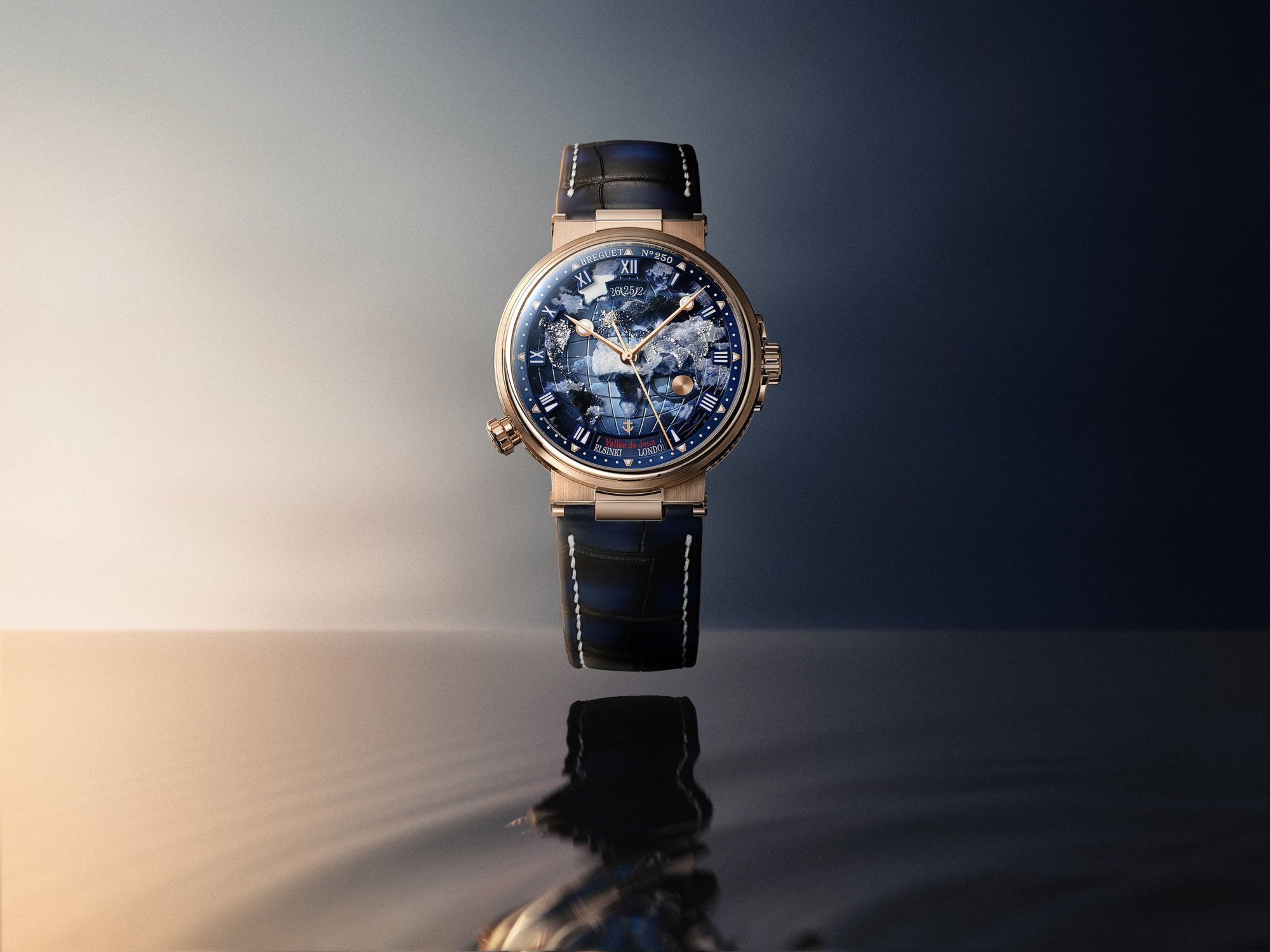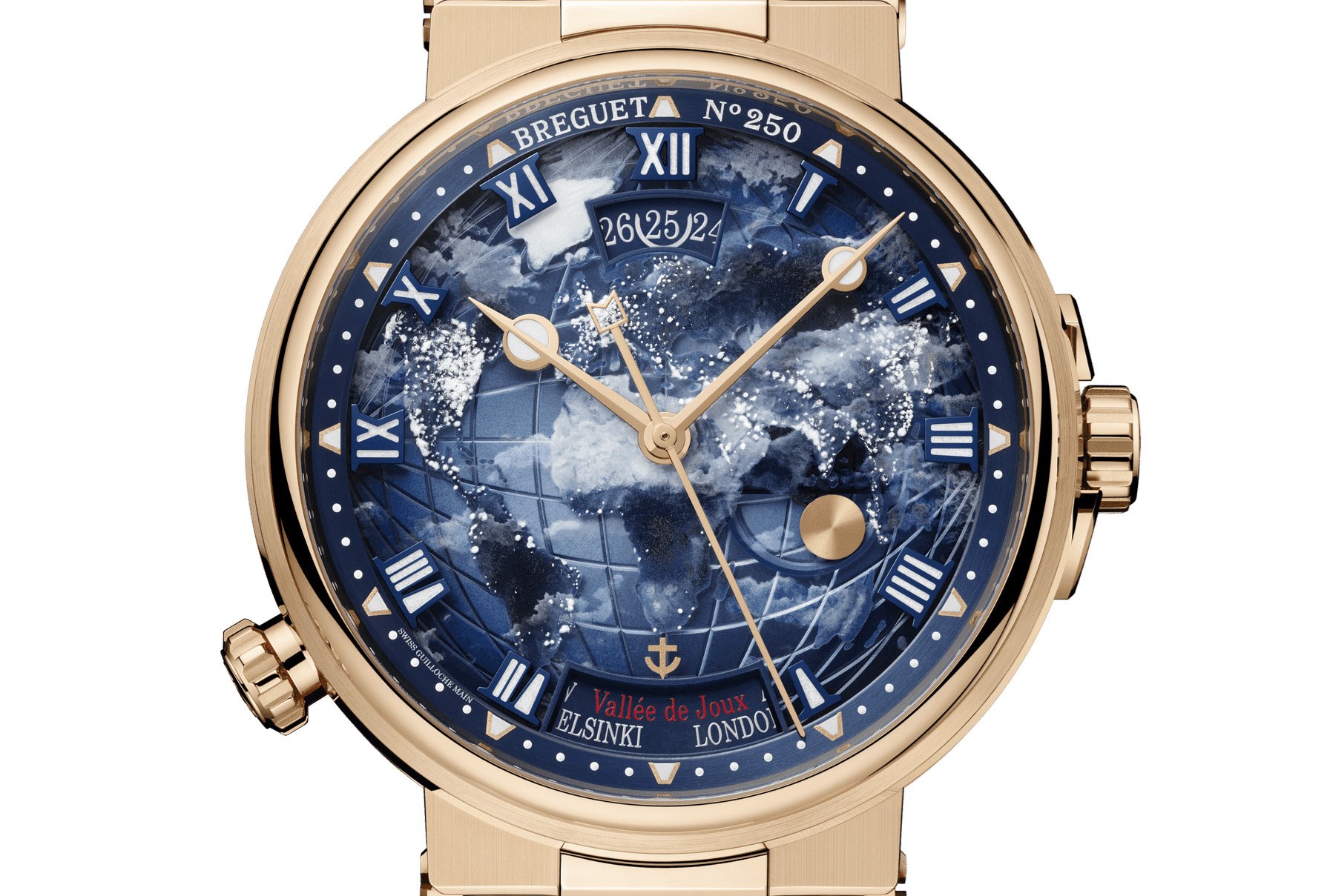 U srcu sata nalazi se složena, dvoslojna konstrukcija brojčanika koja spaja tradicionalnu guilloché (giloš) tehniku s vrhunskom umjetnošću. Donji sloj izrađen je od pune zlatne ploče, ručno ukrašene meridijanima i paralelama te obojene u nijansama od nebeskoplave do tamnoplave kako bi se dočarao susret mora i neba.
