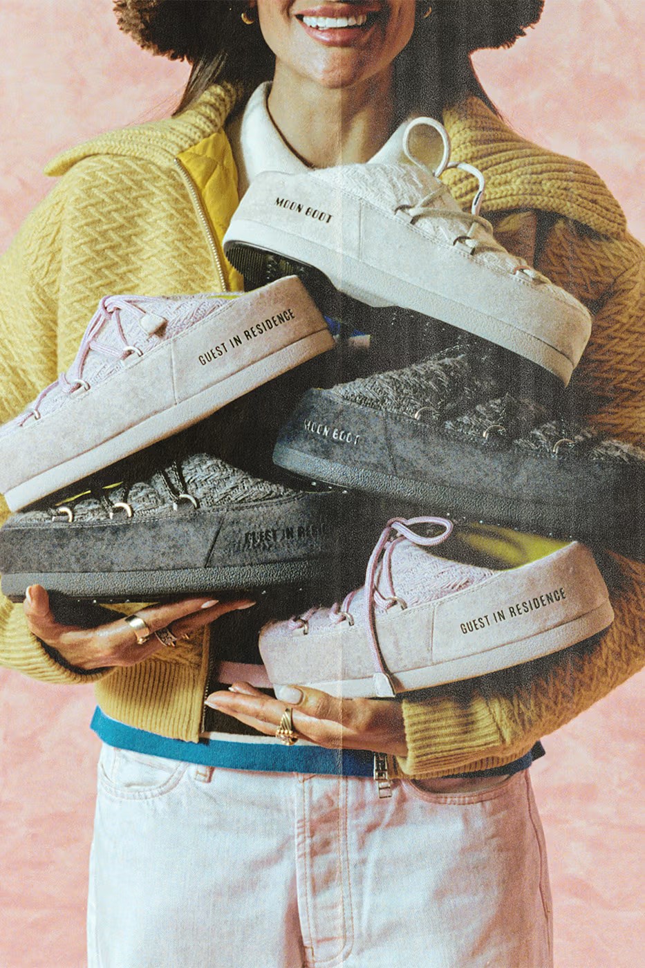 Govoreći o ovoj suradnji, Gigi Hadid je izjavila: "Volim svoje Moon Boot čizme godinama - njihovu posebnu siluetu, odvažne boje i udoban, topli osjećaj. Inspirira me kako je brend ukorijenjen u tradiciji, a istovremeno uravnotežen svemirskom estetikom koja je futuristička i odmah prepoznatljiva. Od naših prvih razgovora veselila me prilika da reinterpretiram njihove kultne siluete kroz estetiku Guest in Residencea."