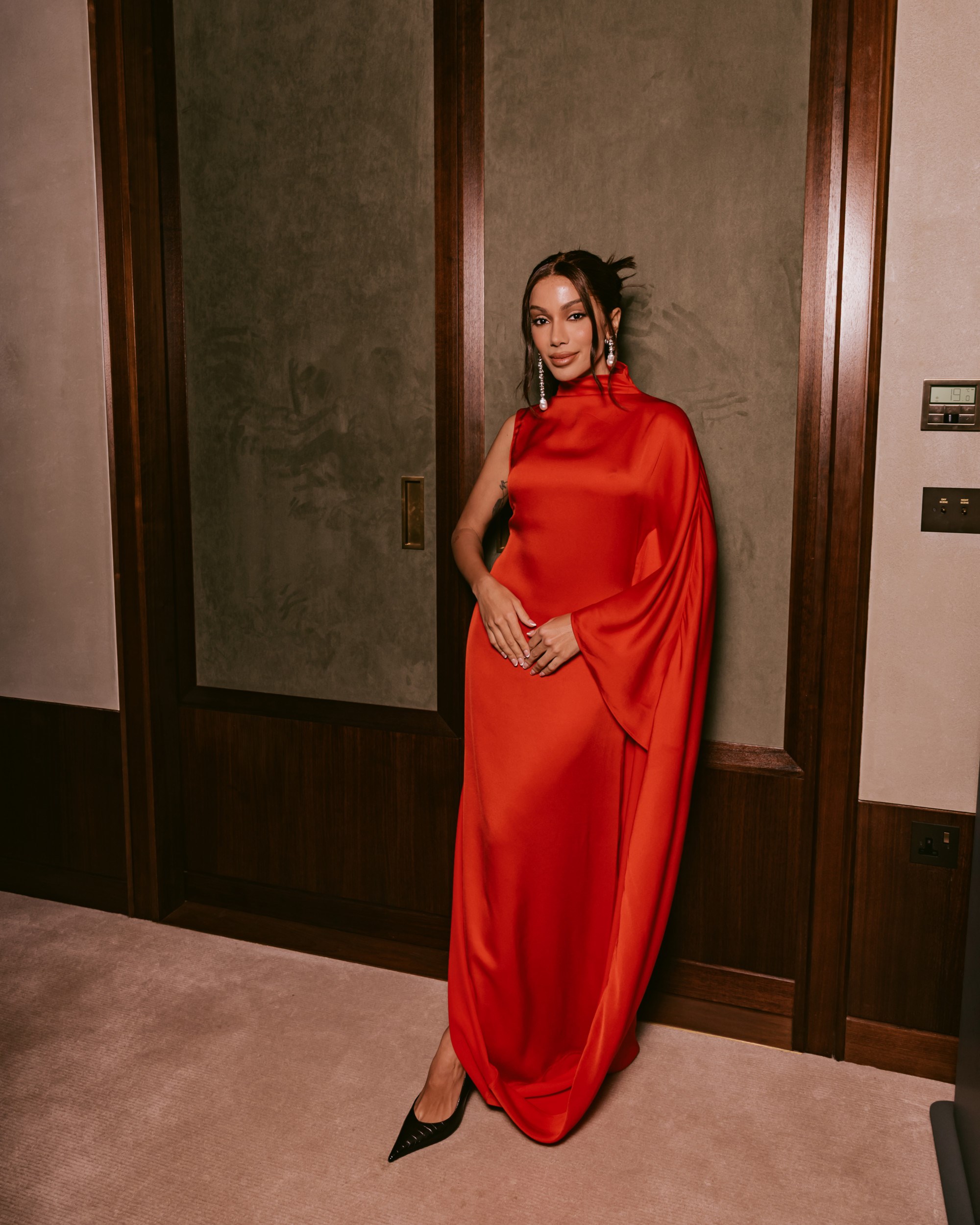 Emily Ratajkowski zablistala je u maloj crnoj haljini s dramatičnim detaljem plašta prebačenog preko ramena, dok je Amelia Gray nosila svjetlucavu mini haljinu bež boje s efektom čipke i kristala te ležerno prebačenim remenom. Yasmin Wijnaldum odlučila se za dugu slip haljinu od istog materijala, a pjevačica Anitta nosila je prilagođenu verziju crvene haljine iz kolekcije.