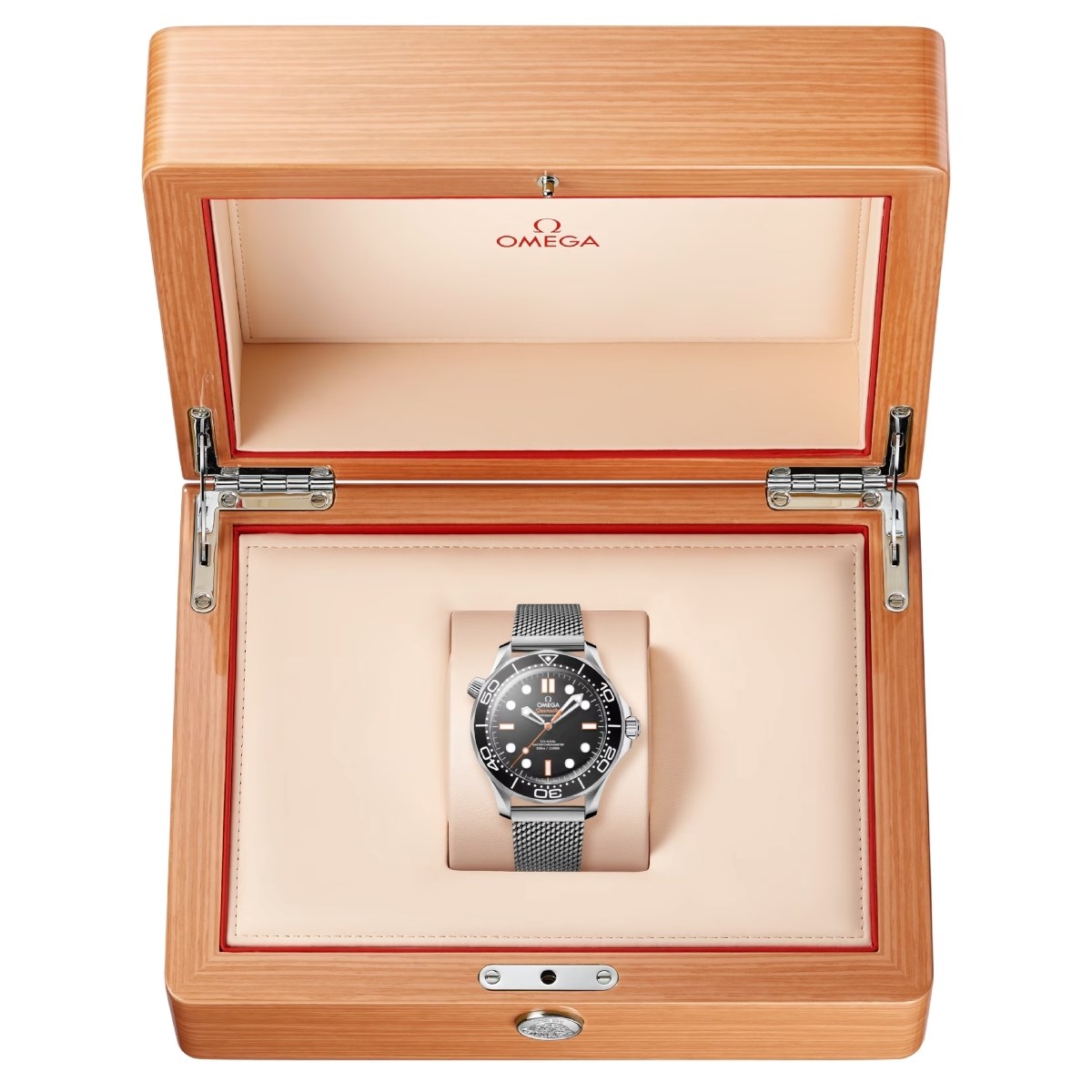 Na prvi pogled, novi model zadržava sve ključne značajke nedavno osvježene Seamaster linije, uključujući aluminijski prsten lunete i mrežastu čeličnu narukvicu. Izdaleka bi ga se lako moglo zamijeniti za prošlogodišnji crni Seamaster 300M, piše Hodinkee.