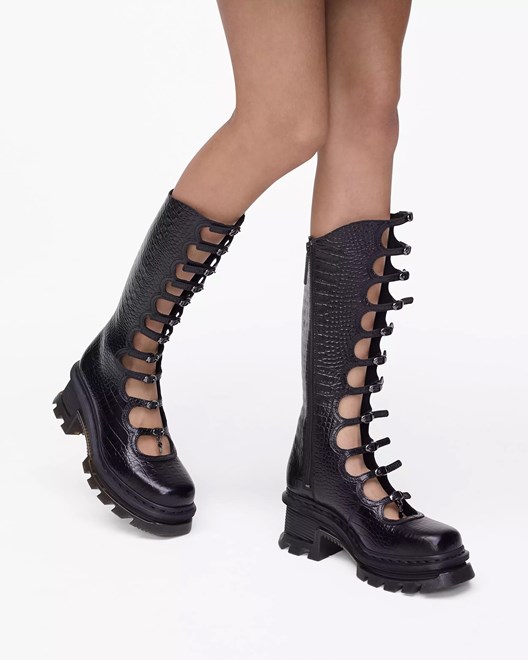 Nova verzija Kiki čizme dostupna je u crnoj boji, boji lavande i s uzorkom crne krokodilske kože. Prepoznatljivi Dr. Martens Corran potplat s petom daje im dodatnu dozu robusnosti, dok srebrne kopče u obliku ljestvi dominiraju dizajnom. Poseban detalj je prilagođeni privjesak s lokotom i ključem, koji podsjeća na prijašnje uspješne suradnje dvaju brendova.