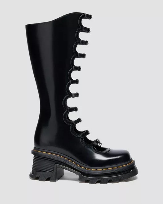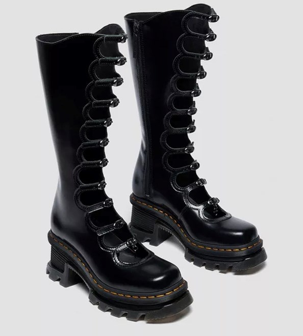 Prvi put predstavljena na modnoj pisti za jesen/zimu 2016. godine, ove čizme s visokom siluetom, smjelim kopčama i prepoznatljivim izrezima brzo su osvojile modni svijet, a sada se vraća u reinterpretiranom izdanju koje spaja razigranu estetiku Jacobsa sa stilom Dr. Martensa.