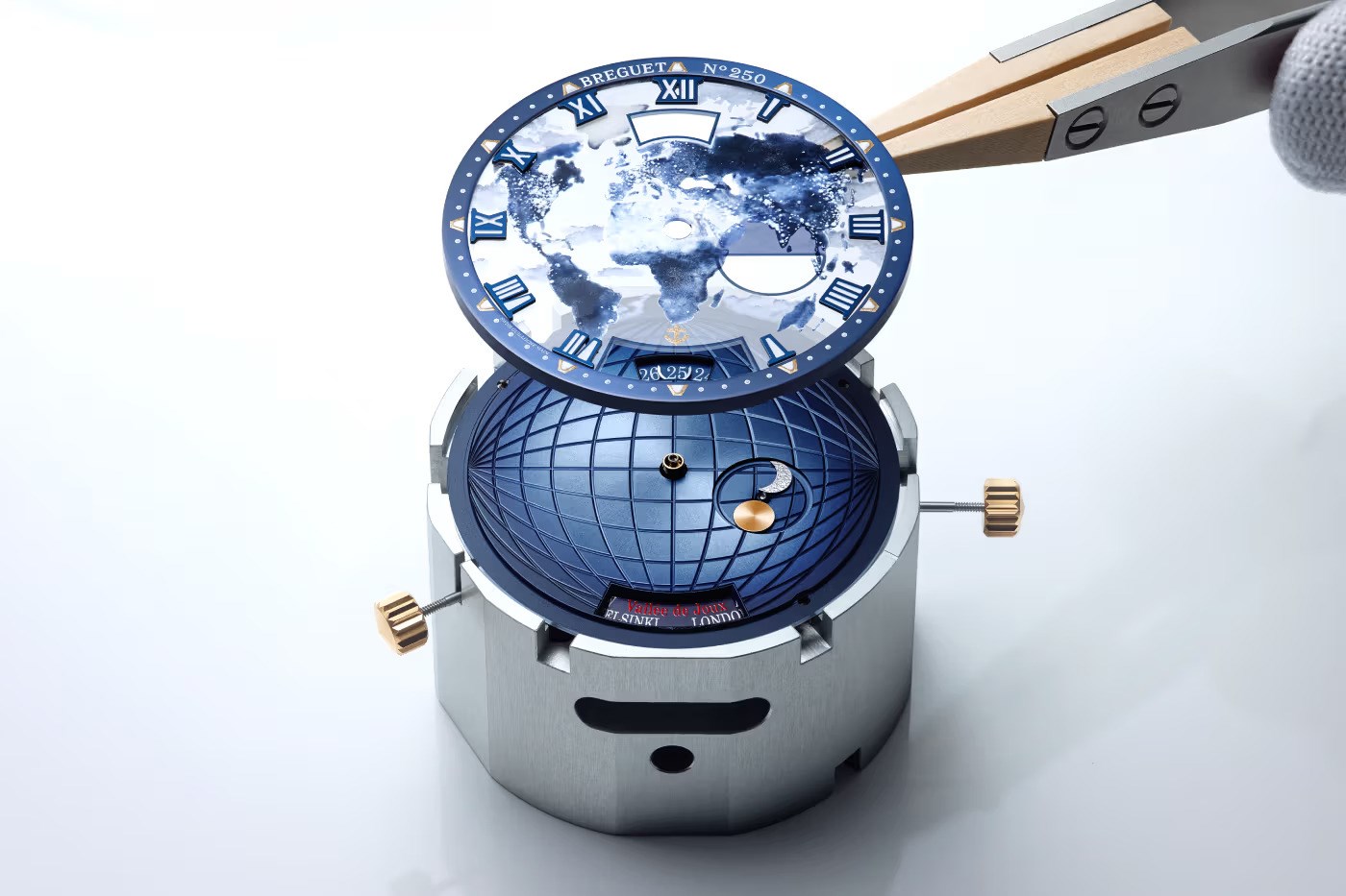 Donji sloj brojčanika izrađen je od ručno obrađenog zlata te ima gradijent od svijetloplave do tamnooplave. Iznad se nalazi prozirni safirni disk koji prikazuje kontinente, oblake i točkice koje prikazuju gradska svjetla. Ovaj složeni, patentirani rad s emajlom osigurava da nijedan brojčanik nije isti.
