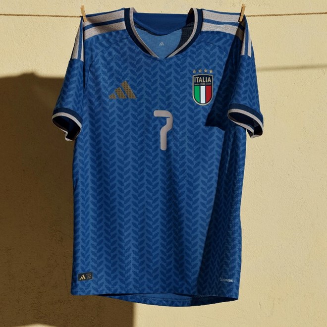 Tradicija i inovacija susreću se na domaćem dresu Italije. Inspiriran bogatim nasljeđem talijanskog nogometa, dres slavi bit saveza (FIGC) svojim odvažnim dizajnom. Riječ "Azzurra", nadimak reprezentacije, ispisana je zlatnim slovima na stražnjoj strani ovratnika.