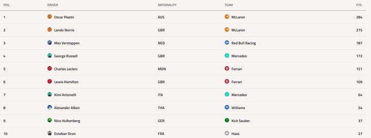 Hamilton je trenutačno šesti u ukupnom poretku vozača.