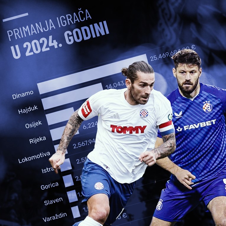 Nikoga neće šokirati da je Dinamo uvjerljivo vodeći klub lige po primanjima igrača. U 2024. godini je u tu svrhu potrošio 25,5 milijuna eura i nitko mu nije ni blizu. U odnosu na 2023. godinu potrošio je 4,5 milijuna eura više, tj. 21,6% više. Dinamo se tako vratio na istu potrošnju kao u 2022. godini nakon što su u 2023. godini osjetno smanjili proračun za plaće. Prema neslužbenim informacijama, povećanje u 2024. godini se skoro u potpunosti odnosi na isplaćene premije za ulazak u Ligu prvaka.