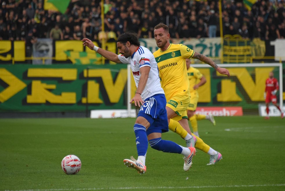 Napada Hajduk. Odlično se zagradio i dao loptu za Hrgovića na lijevu stranu, no njegovo ubacivanje nije pronašlo metu u sredini.