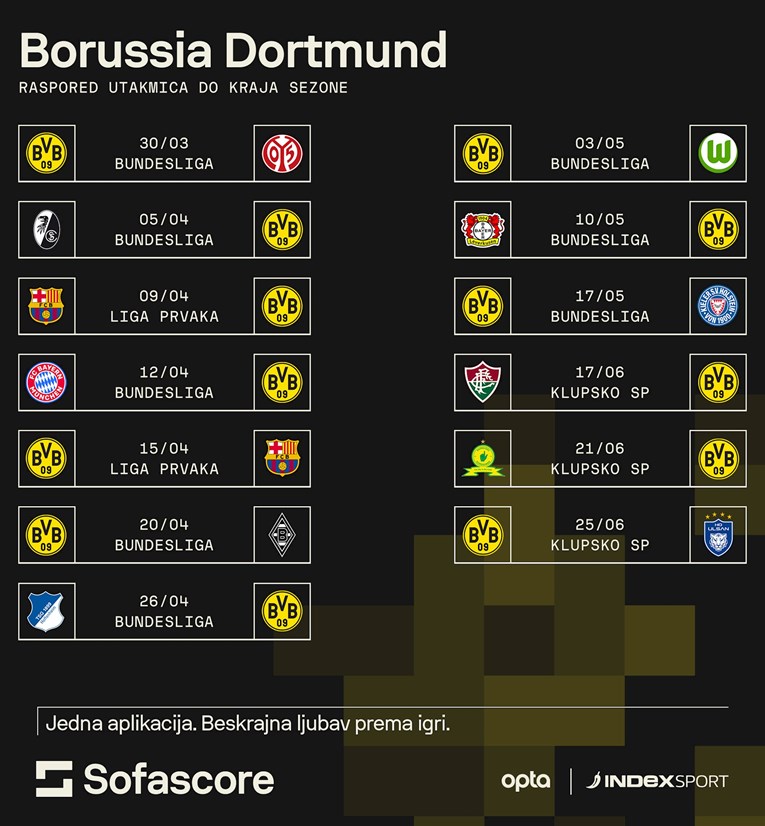 Do kraja sezone slijede im gostovanja kod tri vjerojatno najjače momčadi lige - Leipziga, Leverkusena i Bayerna - a uz to moraju igrati protiv Mainza, Freiburga, Gladbacha i Wolfsburga, koji svi djeluju u boljoj formi od njihove. Lakši dio rasporeda zapravo je iza njih te je malo reći da ga nisu iskoristili.