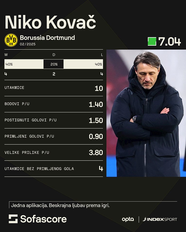Međutim, koliko god plasman u četvrtfinale Lige prvaka bio rezultatski i reputacijski uspjeh, sve okolnosti i ambijent oko kluba zapravo daju naslutiti da Kovač neće, a i ne može uspjeti u Dortmundu. A vjerojatno u ovom trenutku ne bi mogao uspjeti ni bilo tko drugi.