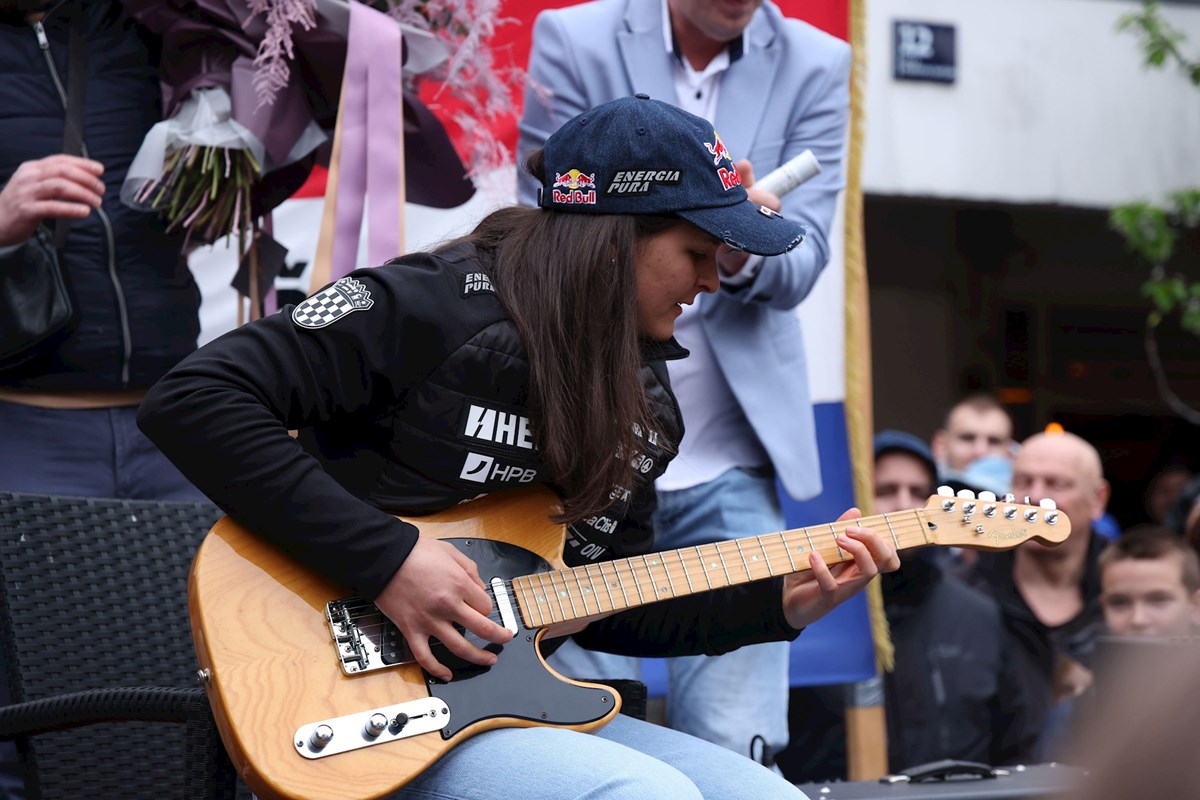 Mještani su se okupili te uz pjesmu, hrvatske zastave i baklje dočekali autobus. Ljutić je izašla s visoko podignutim Globusom, na što su sumještani odgovorili pljeskom, a djeca se pohitala fotografirati. Stala je potom na pozornicu te su krenule ovacije. "Vidim puno prijatelja i poznanika iz kvarta. Hvala vam što ste došli", rekla je Ljutić, podijelila autograme pa uzela gitaru i kratko svirala, nakon čega je uslijedio vatromet.