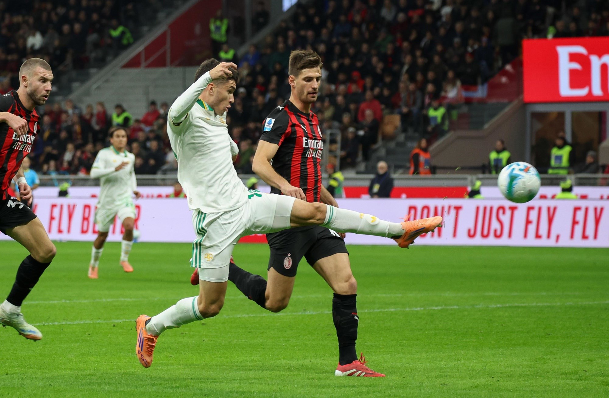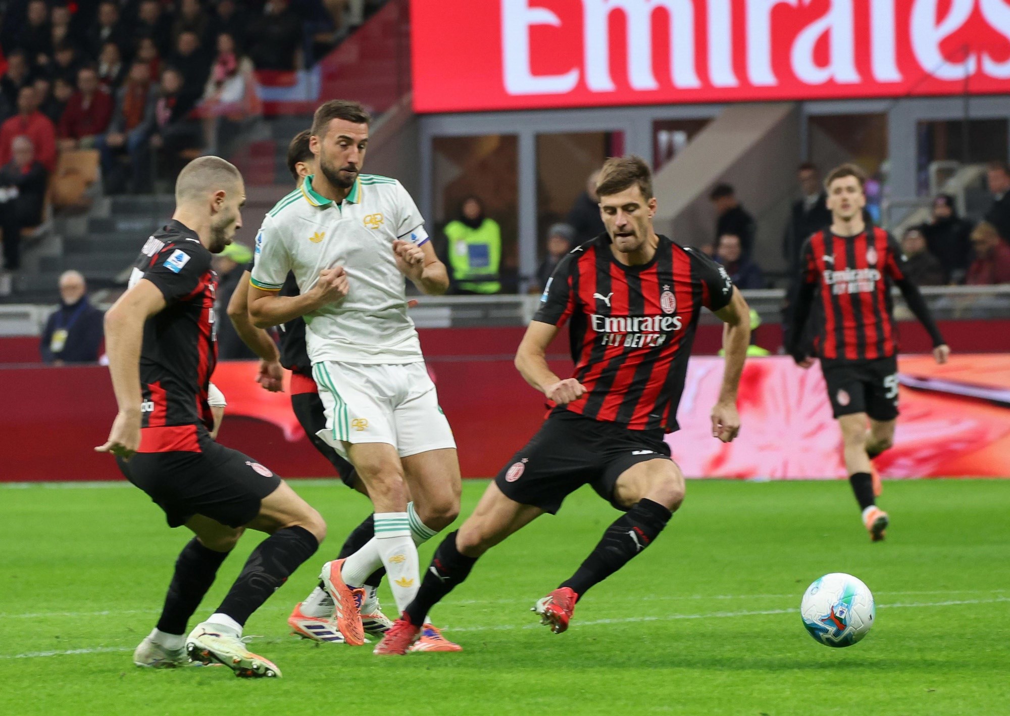 Roma je prijetila udarcima s distance, kontrolirala posjed i Milana nije bilo nigdje na terenu. No u 39. minuti gosti iz Rima šokirani su nakon sjajne kontre domaćina. Rafael Leao, jedan od najdominantnijih ofenzivaca Serie A, spustio se s lijeve strane i prošao sve prepreke te lako poslužio natrčalog stopera Strahinju Palovića.
