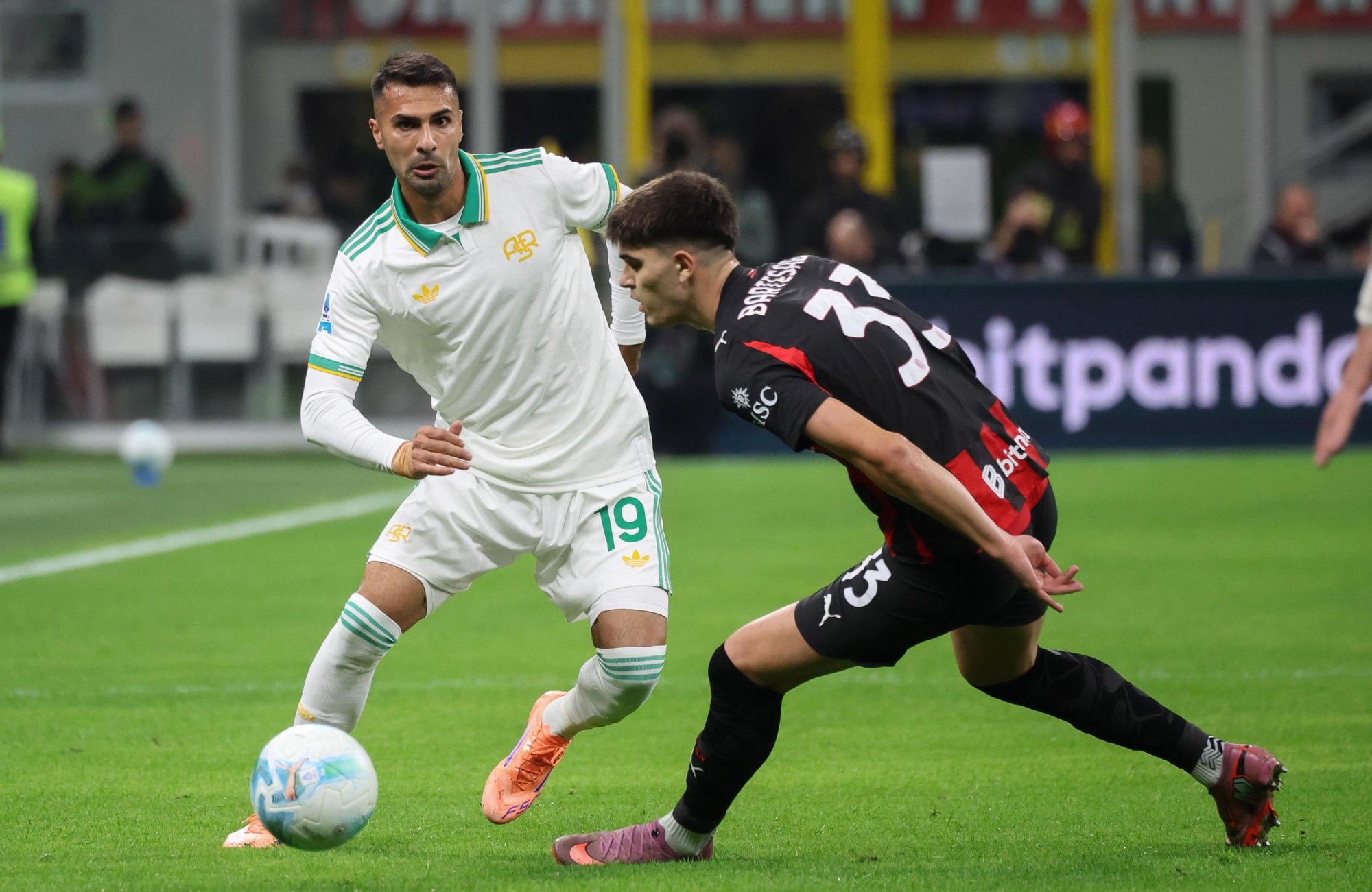 Fofana je žestoko ušao u Pellegrinija i dobio žuti karton na rubu kaznenog prostora Milana. Potom je Lorenzo Pellegrini šutirao iz slobodnjaka, a lopta je na putu prema golu pogodila u ruku Fofanu. Guida je odmah pokazao na bijelu točku.