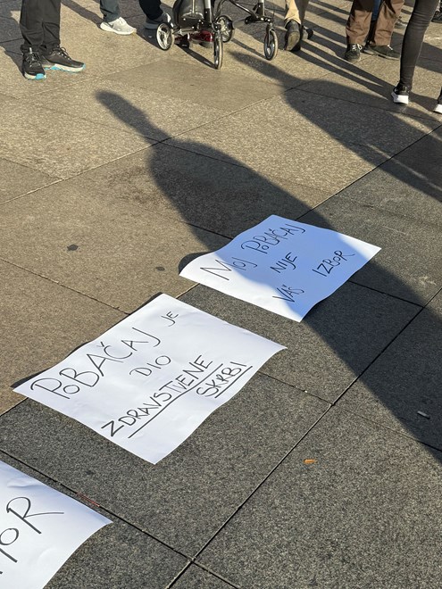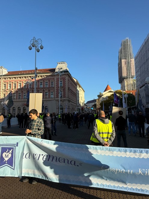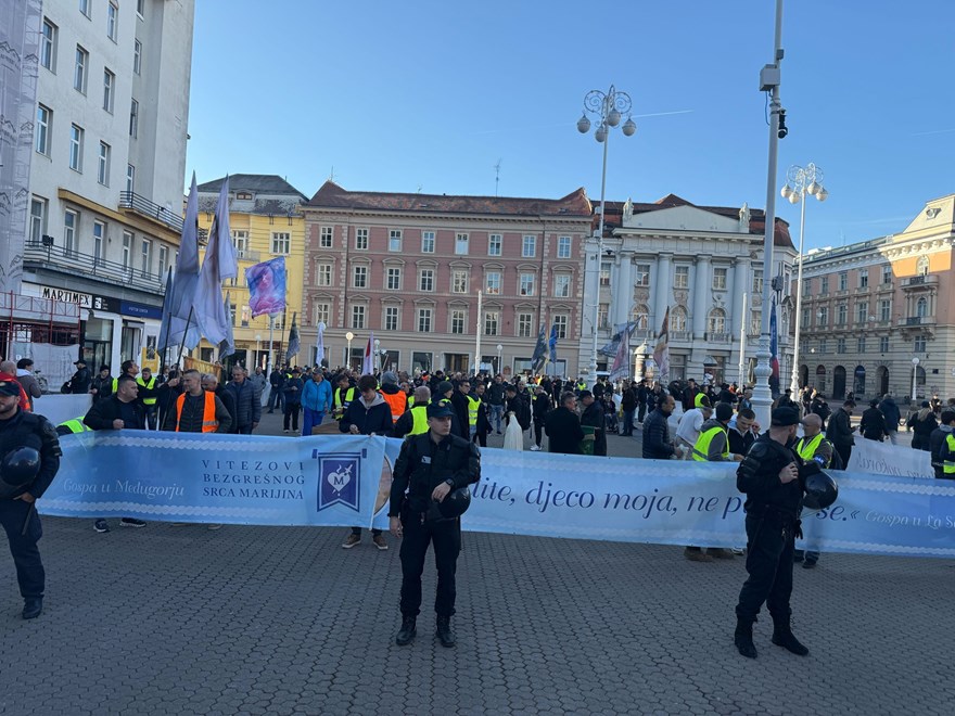 Policija je privela jednu osobu. Zasad nije poznato zašto. Kako javlja naša reporterka, on je stajao kod protuprosvjednika i cijelo vrijeme im nešto dobacivao.