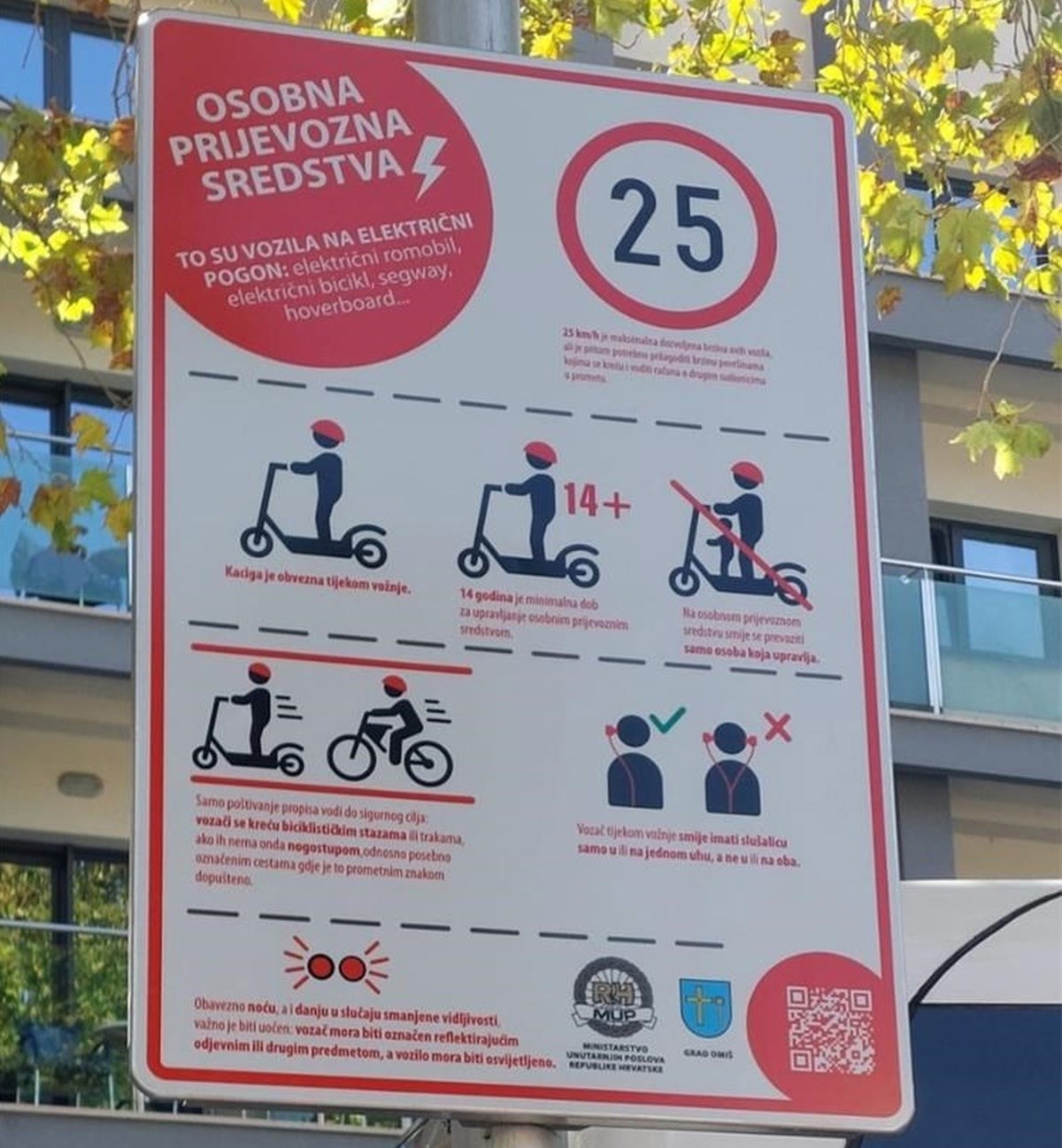 U OMIŠU su postavljeni novi informativni znakovi koji vozače osobnih prijevoznih sredstava, poput sve popularnijih električnih romobila, podsjećaju na ključna pravila i zakonska ograničenja. Inicijativa je pokrenuta s ciljem povećanja sigurnosti svih sudionika u prometu, a posebno djece i mladih, objavila je policija.