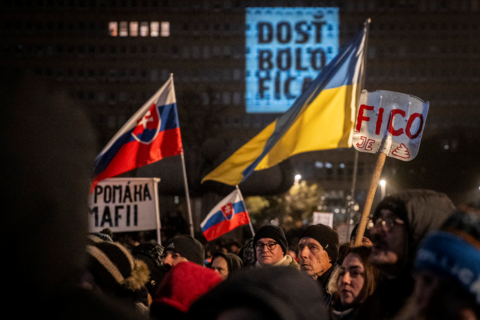 Michal Šimečka, predsjednik oporbene stranke Progresivna Slovačka koja je organizirala prosvjede, kazao je okupljenima: "Slovačka je jedina zemlja u kojoj vlada donosi zakone kako bi olakšala život kriminalcima i mafiji."