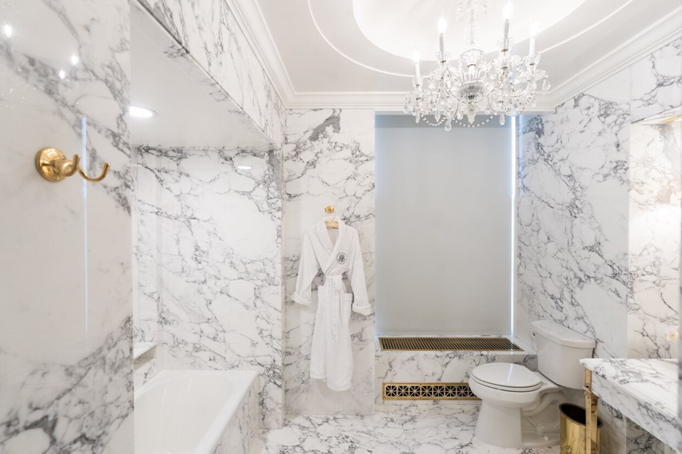 Trump je objavio fotografije nove kupaonice gdje su zelene pločice u art deco stilu zamijenjene crno-bijelim mramorom. Ustvrdio je kako je novi dizajn "vrlo prikladan za vrijeme Abrahama Lincolna i, zapravo, mogao bi biti mramor koji je izvorno bio tamo!".