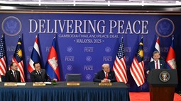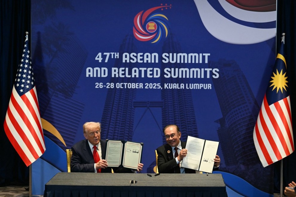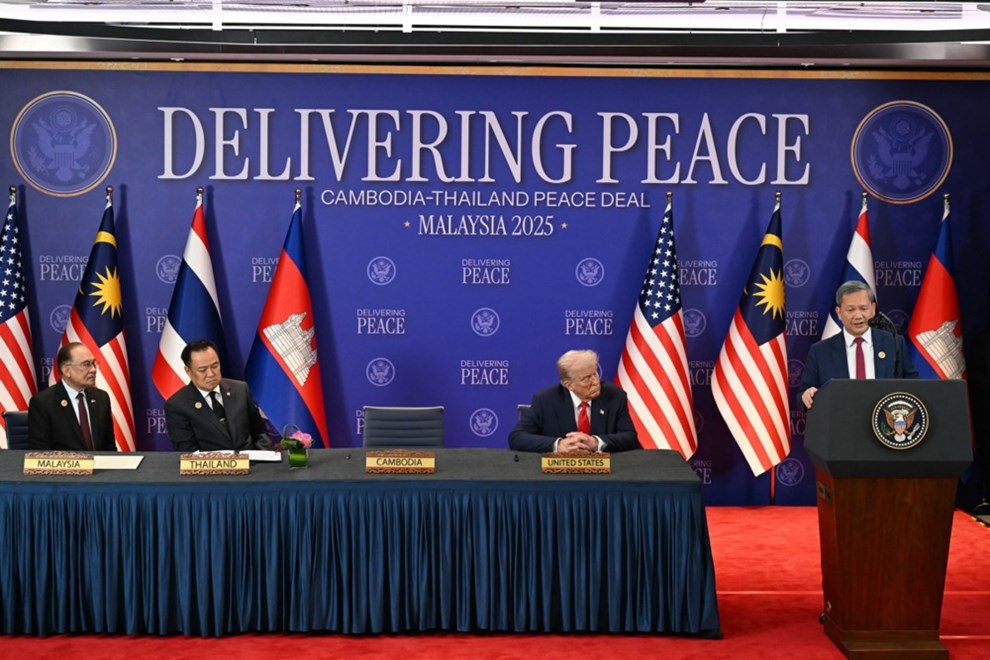 Američki predsjednik promatrao je kako kambodžanski premijer Hun Manet i tajlandski premijer Anutin Charnvirakul potpisuju prošireni prekid vatre na godišnjem summitu Udruženja zemalja jugoistočne Azije (ASEAN) u Maleziji, nedugo nakon Trumpovog dolaska.