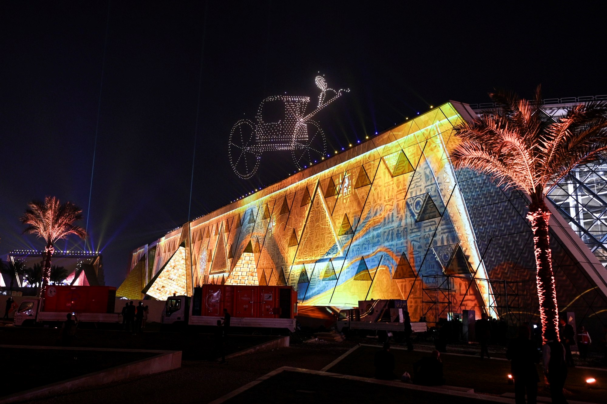 Muzej, koji se nalazi blizu piramida, otvoren je 1. studenoga raskošnom ceremonijom kojoj su prisustvovali deseci svjetskih čelnika i predstavnika medija. Glasnogovornik je rekao da u prosjeku svaki dan muzej posjeti oko 19.000 ljudi kako bi vidjeli zbirku, koja uključuje artefakte iz grobnice kralja Tutankamona i 42 metra dug solarni brod kralja Keopsa (Kufua). Ove brojke premašile su očekivanja egipatskih vlasti.