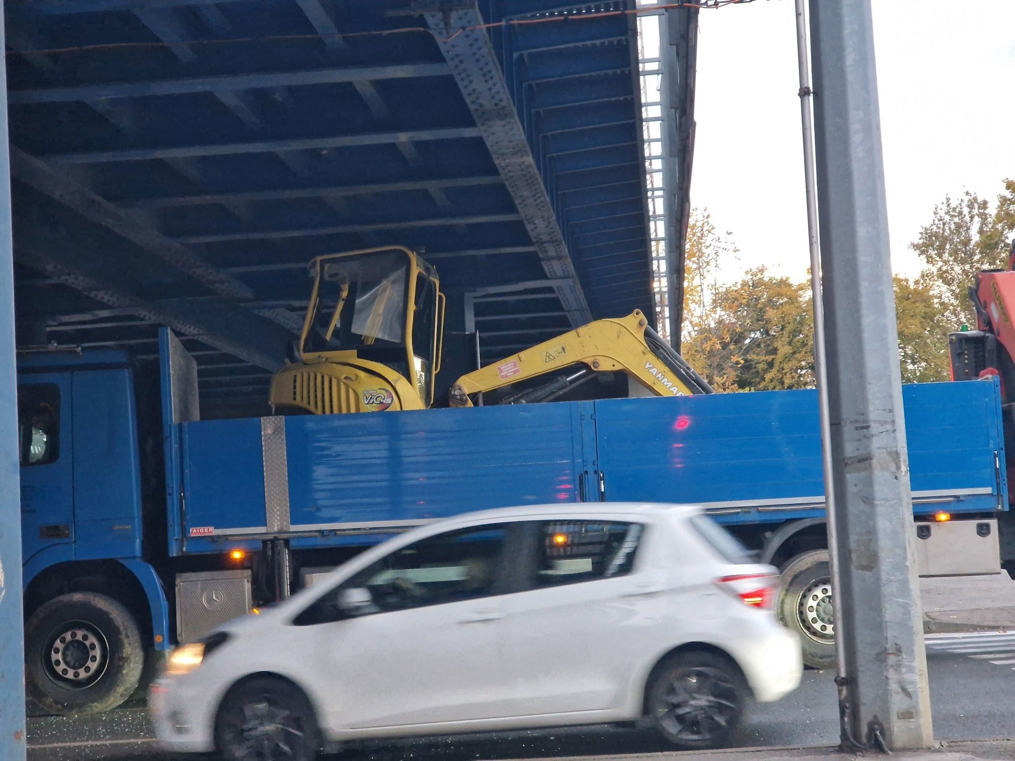 U naletu je vidno oštećena kabina bagera, kao i sam nadvožnjak.