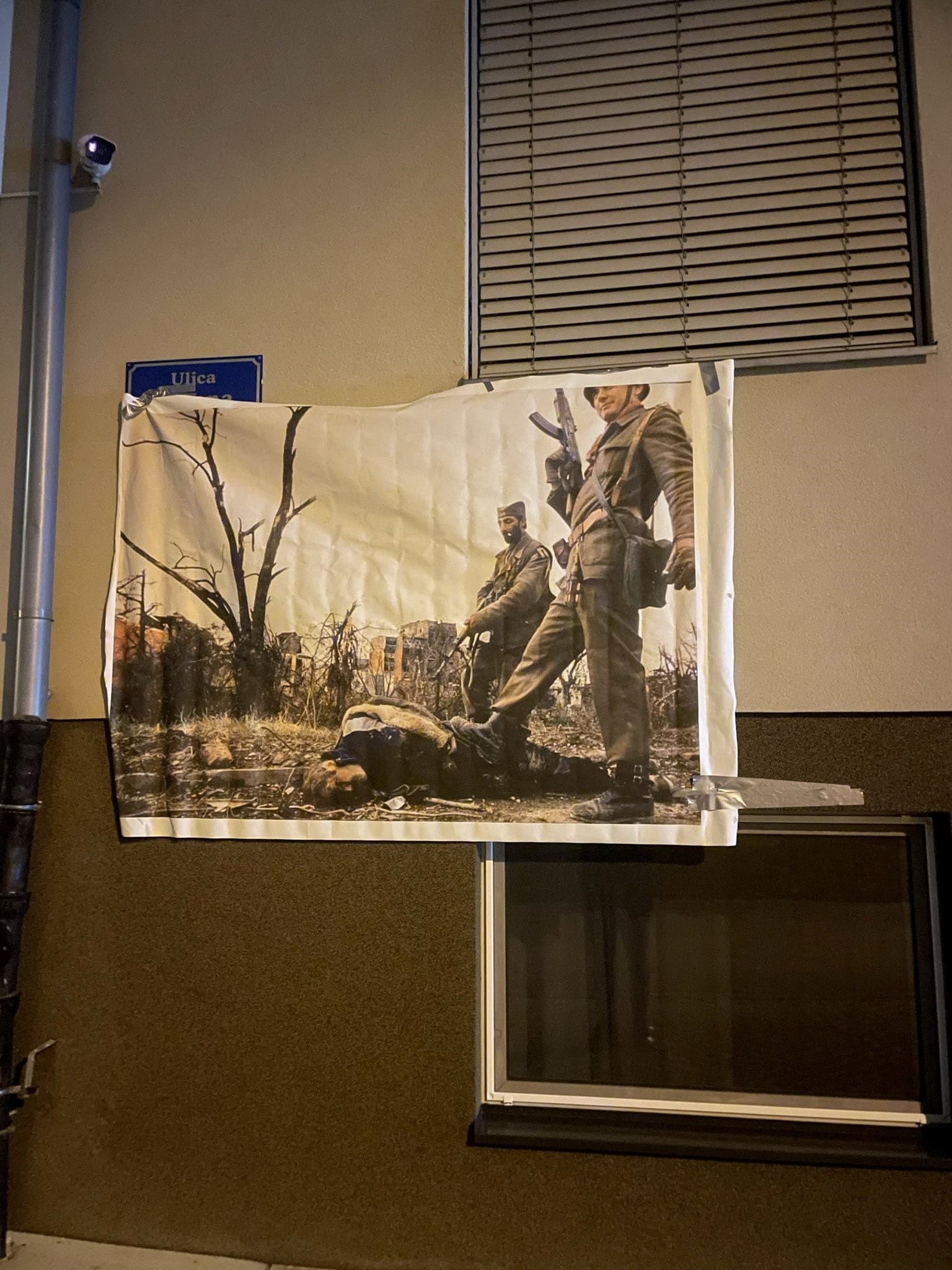 Noć uoči planiranog otvaranja izložbe osvanule slike četnika i transparenti