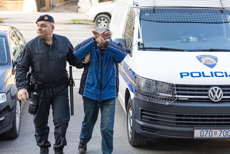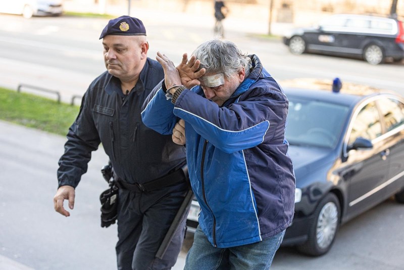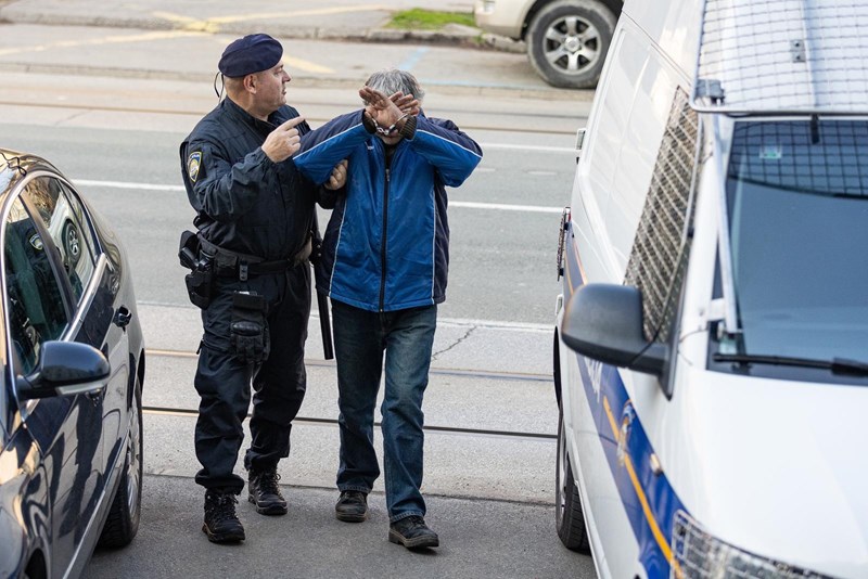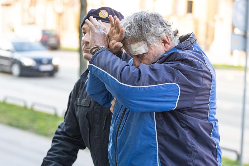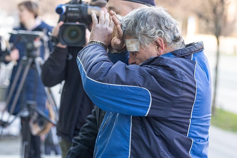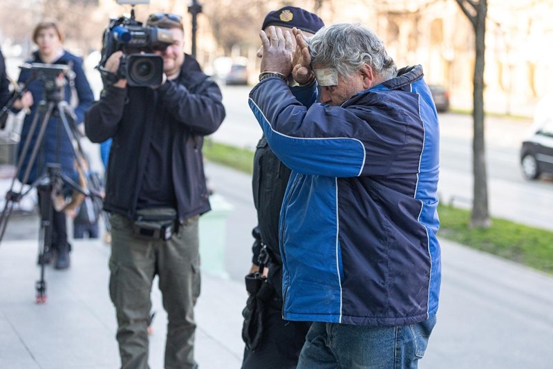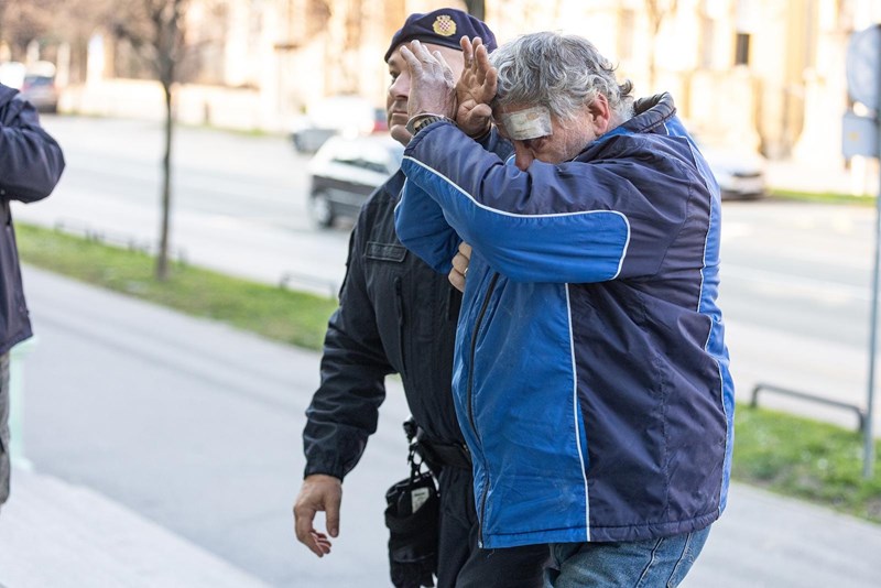 Dok su ga policajci vodili na sud u lisicama, skrivao je lice i bunio se što ga snimatelji i fotoreporteri snimaju i fotografiraju.