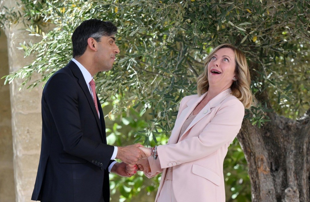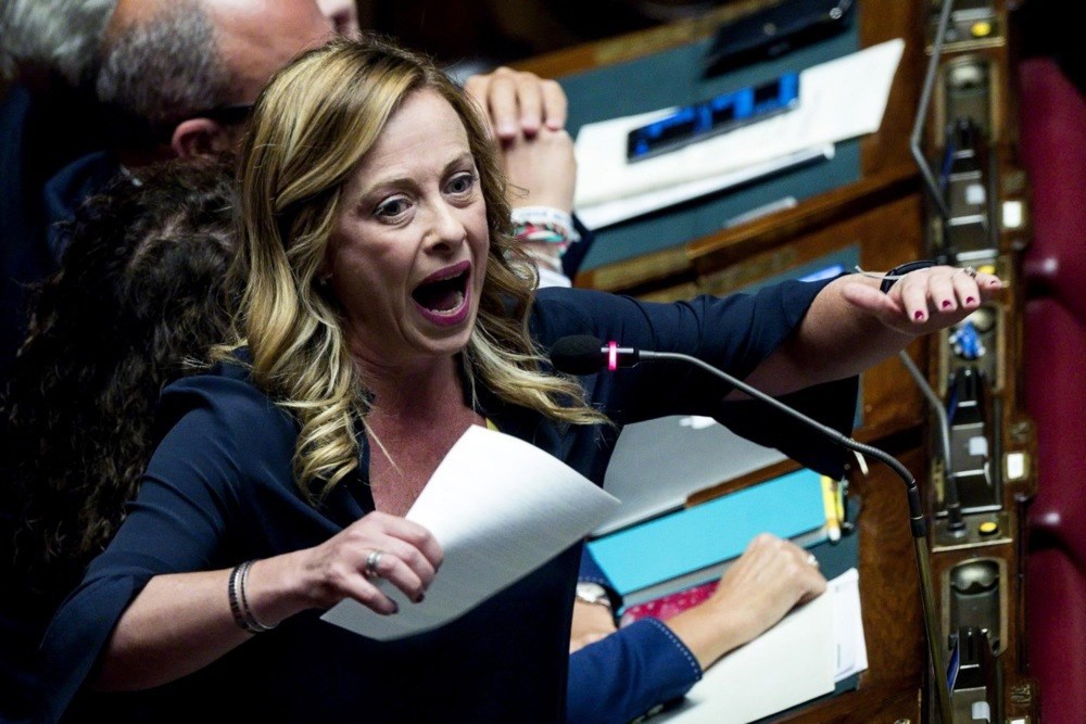 Na skupu na slikovitom Trgu sv. Lorenza u Firenci, Meloni je kritizirala oporbene stranke s ljevice, rekavši da im je dovoljno da Italija bude svedena na mlađeg partnera "EU divovima" Francuskoj i Njemačkoj.