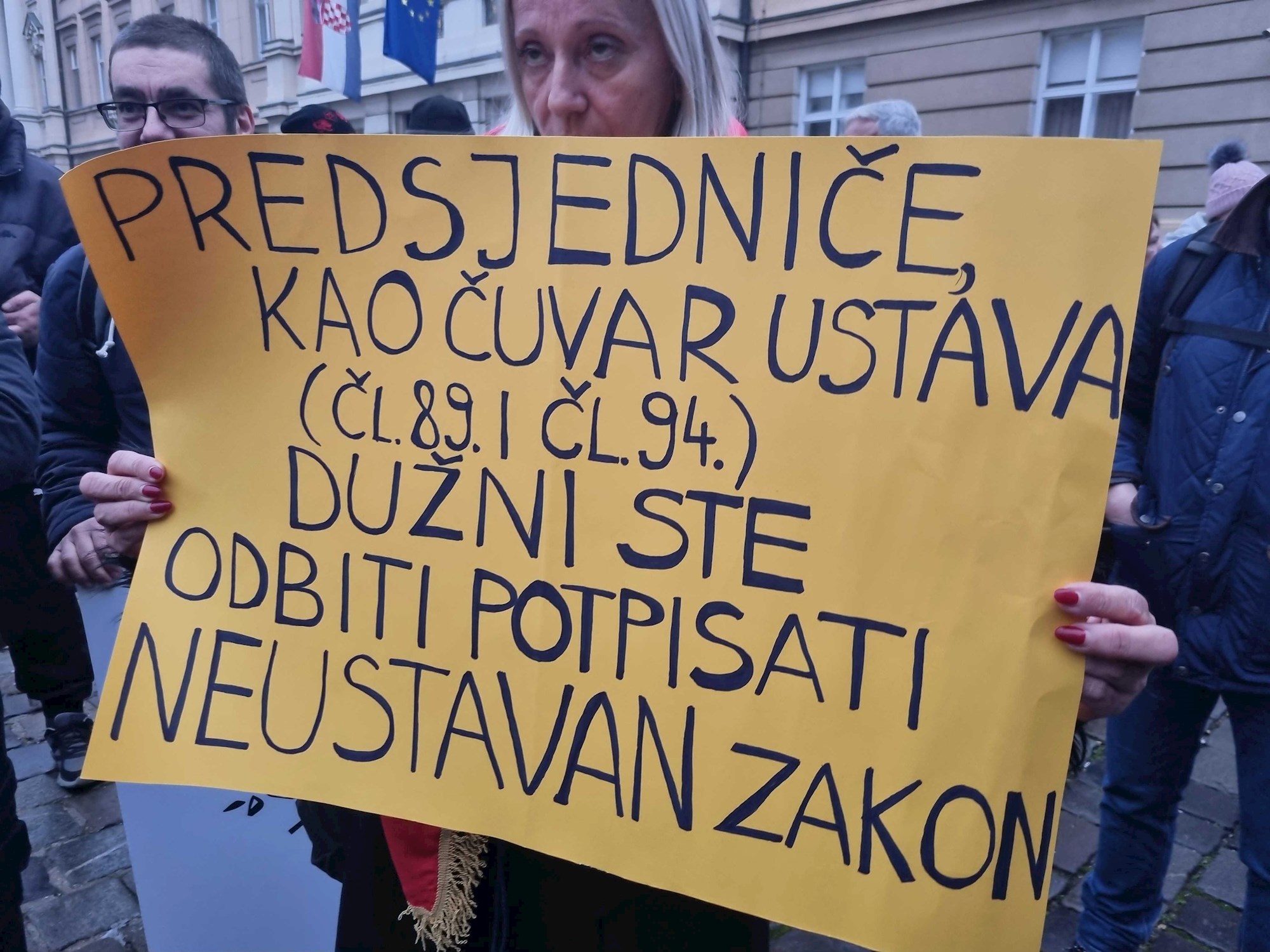 Nadam se da će se oni koji nas zastupaju zamisliti nad odlukom koju će danas donijeti. Je li vlast hrvatskog naroda? Žele li imati ljude ili zamorce u ovoj državi? To je to od mene, idemo dalje!" poručila je jedna od organizatorica prosvjeda.