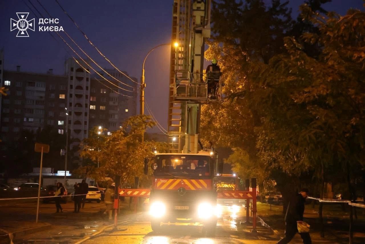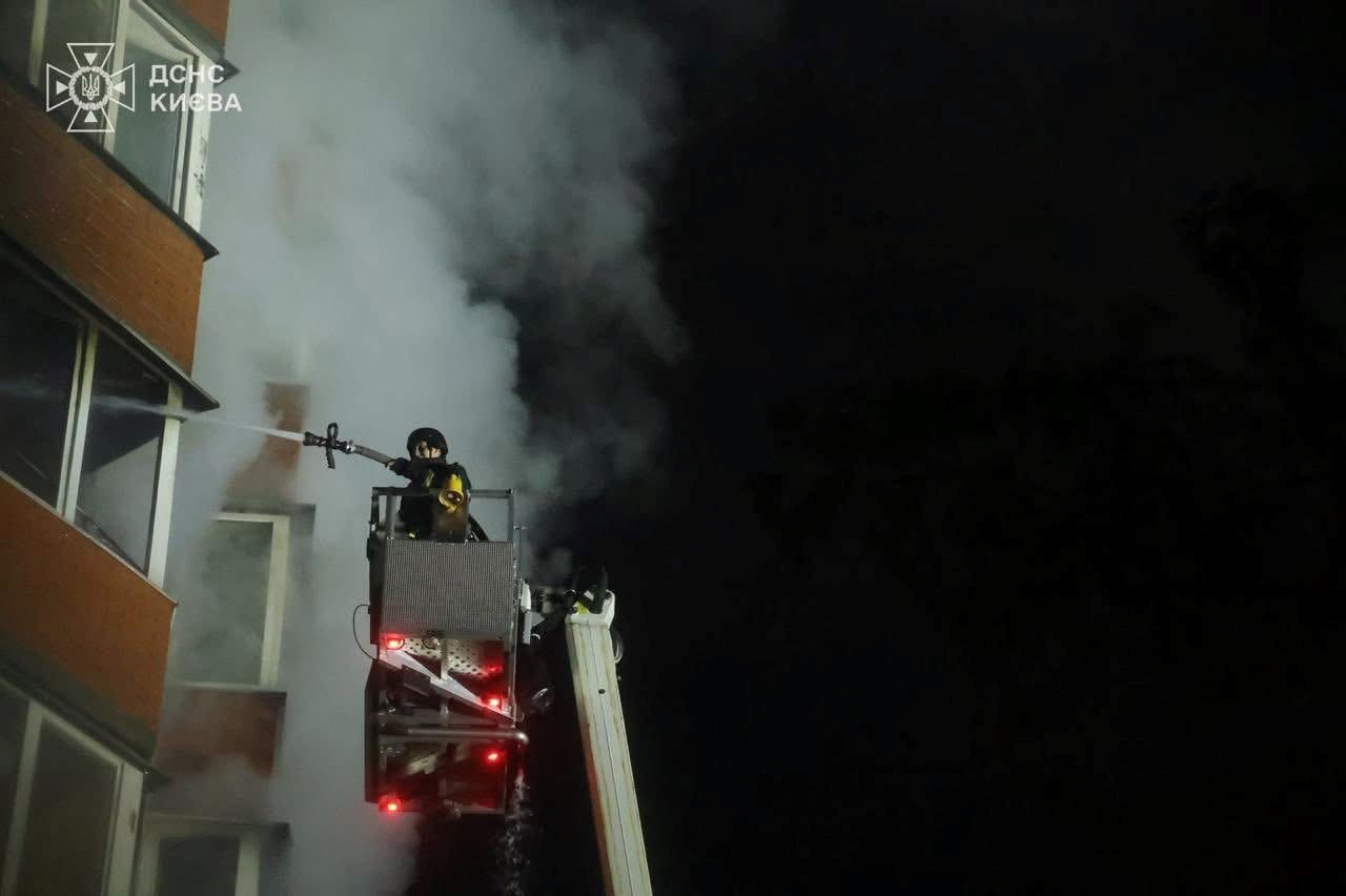 Požar je izbio i u stambenoj zgradi od 10 katova u četvrti Desnjanskij, također zbog pada krhotina. U četvrti Holosijiv je nakon eksplozije izbio požar, a u četvrti Solomjanskij krhotine su pale na područje garažne zadruge.