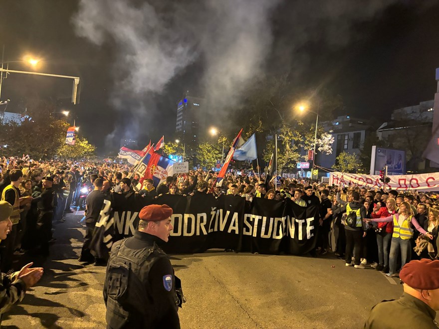 Na raskrižju Bulevara oslobođenja i Ulice narodnog fronta u Novom Sadu, neposredno prije Mosta slobode, večeras se očekuje glavno okupljanje sudionika marša. Taj prostor već se puni ljudima i djeluje kao mjesto na koje će se, kako se procjenjuje, sliti kolone iz cijele Srbije.