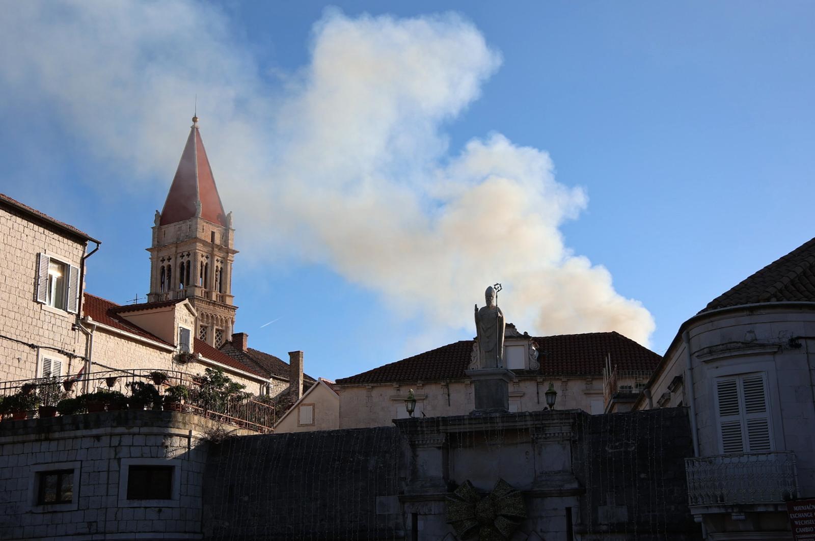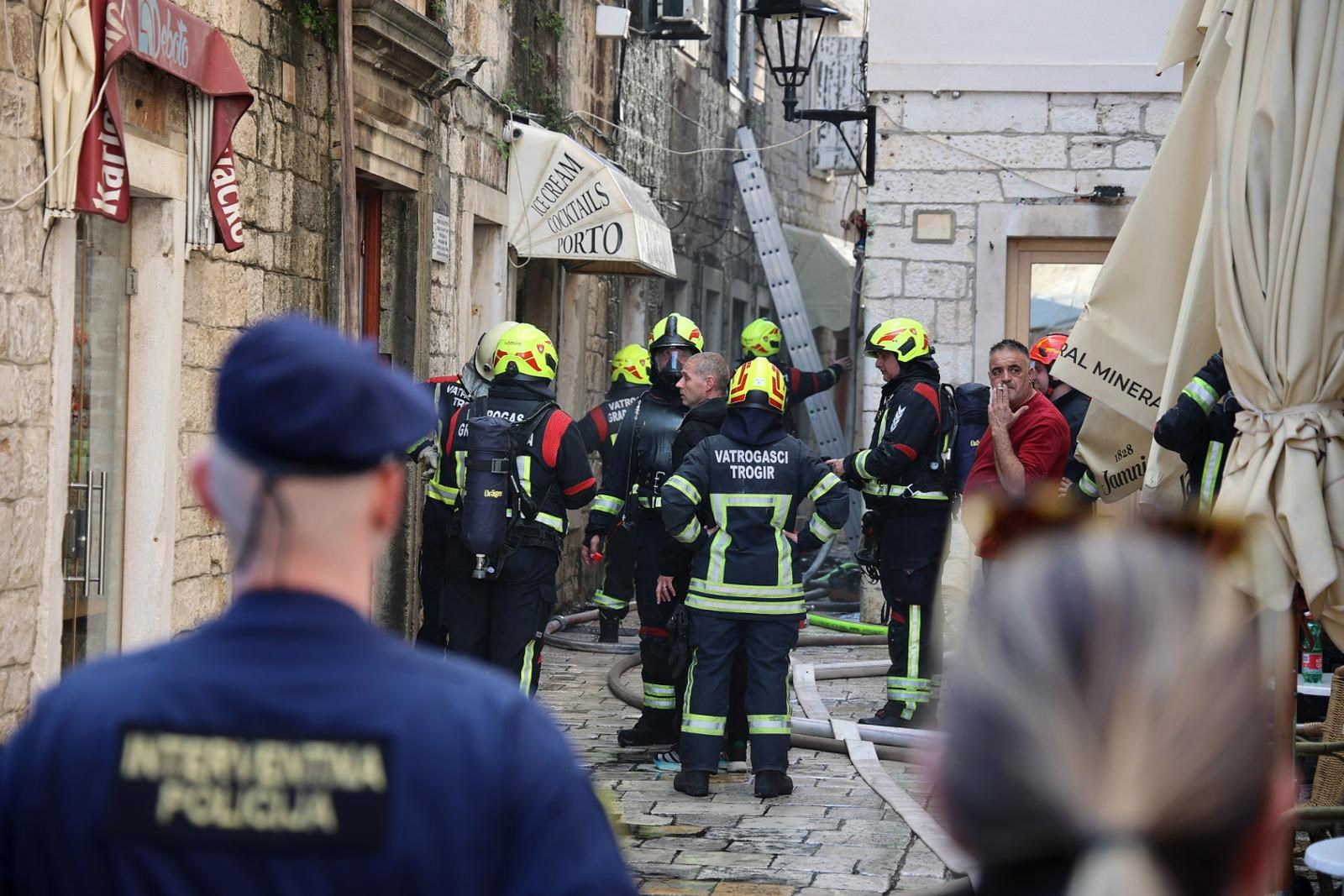Ugašen je požar u staroj jezgri Trogira. Urušio se krov, vatrogasac lakše ozlijeđen