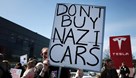 U San Franciscu se ispred Teslinog salona okupilo oko 200 ljudi, a prosvjednici su blokirali promet, zbunjujući autonomna vozila koja su pokušavala zaobići masu. Prolaznici su trubili u znak podrške, a neki su podizali transparente s natpisima poput "Spali svoju svastiku prije nego ona spali tebe." Američke zastave vijorile su se okrenute naopako.