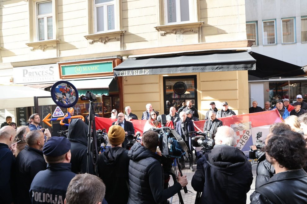 ISPRED Srpskog narodnog vijeća u Zagrebu jutros se ukazao čelnik Autohtone hrvatske stranke prava (A-HSP) Dražen Keleminec sa skupinom pristaša. Odmah po dolasku pustili su Thompsonove pjesme, uključujući Bojnu Čavoglave, a prisutne su bile i brojne policijske snage.