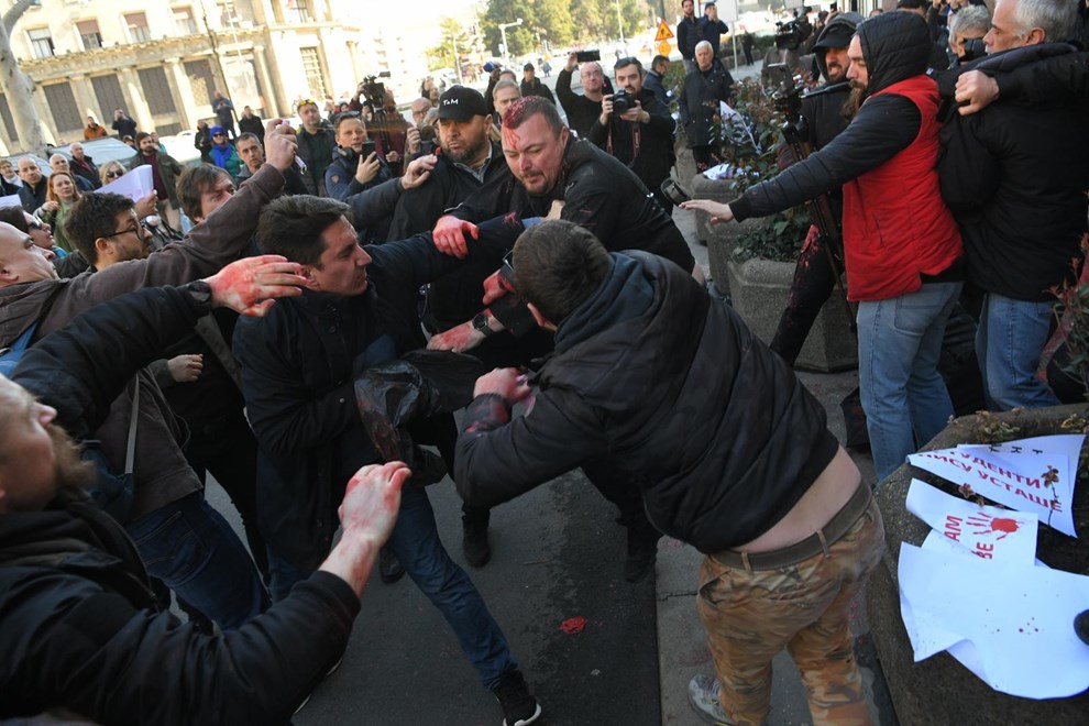 ISPRED zgrade Skupštine grada Beograda danas je izbila masovna tučnjava između građana i pripadnika osiguranja. Do sukoba je došlo kad su okupljeni pokušali ukloniti zaštitnu ogradu, nakon čega su zaštitari preskočili barijeru i fizički nasrnuli na građane. U jednom trenutku situacija je eskalirala u ozbiljan obračun.
